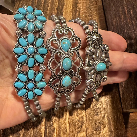 BohoChic Turquoise Flower Bracelet: Stretch & Stylish