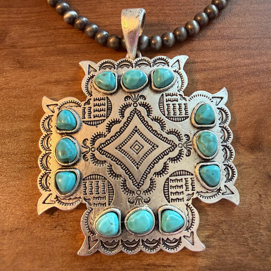 Aztec Turquoise Two Strand Necklace 24 Inch Handmade