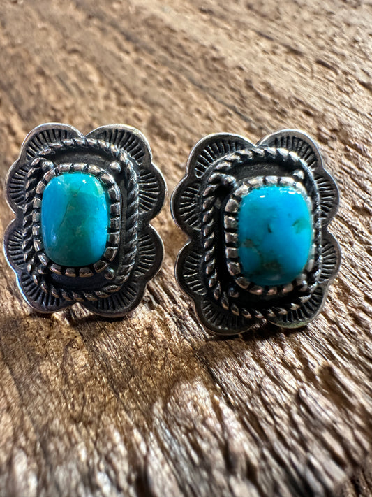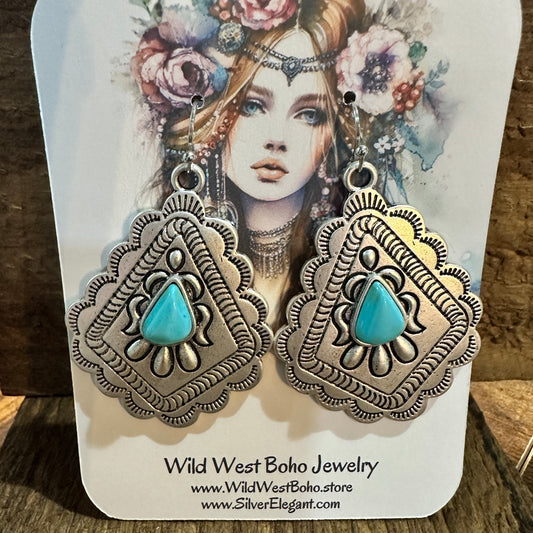 721034 Concho Turquoise Earrings - 2 Inch Long Beauty