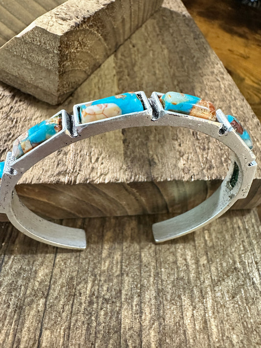 Bar Gemstone Cuff Bracelet in Antique Silver Style, Southwestern Chic