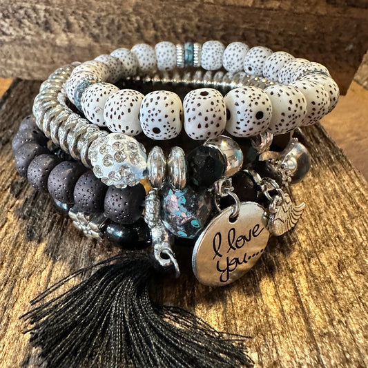 Bohemian Hippie Bracelet Set: Chic Wooden Beads & Love Feather | 4-Piece Stretch Gift Box