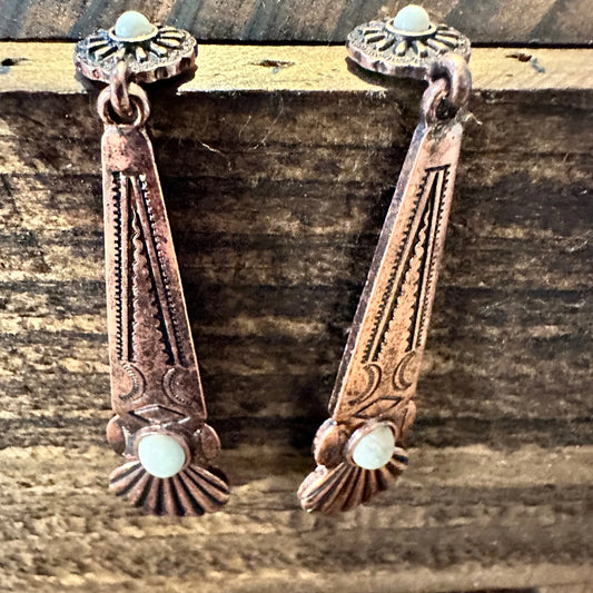 Boho Hippie Cowgirl Conch Drop Earrings, White Stone Copper Plated, Gift Box