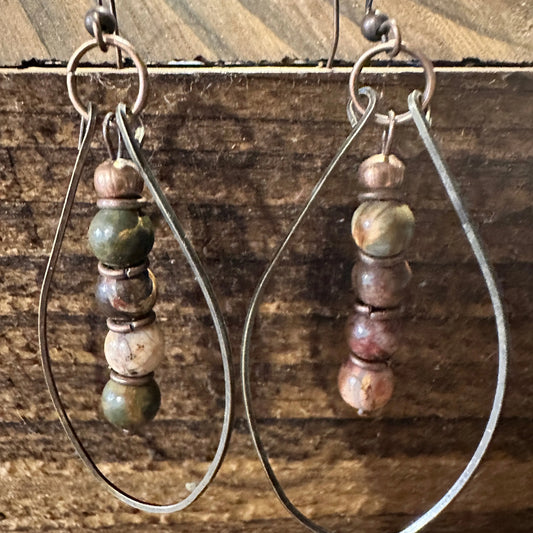Boho Hippie Cowgirl Western Stamped Stone Copper Earrings - Cactus Thunderbolt Arrows, Gift Box