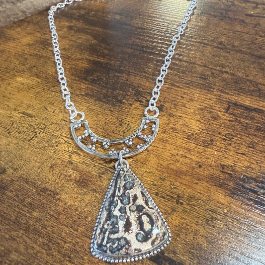 Leopard Skin Jasper Gemstone Ethnic Chain Necklace Sterling Silver 18 Inch