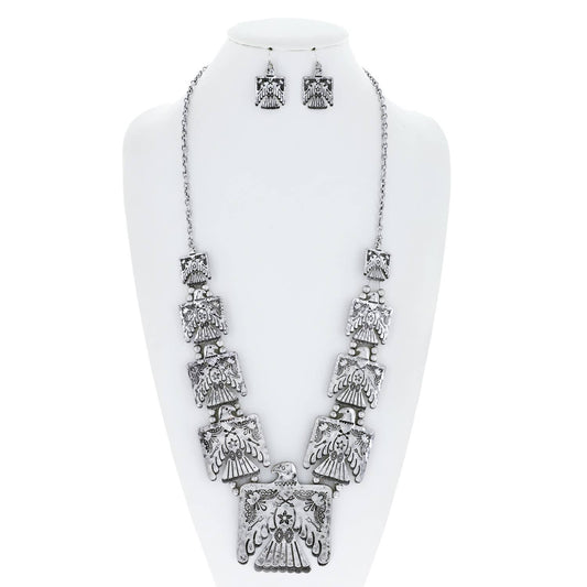 Thunderbird Multi Charm Western Necklace With Layered Charms and Earring Set