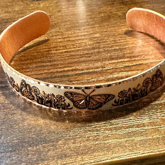 Handmade Boho Copper Monarch Butterfly Design Bracelet, Cuff Boho Bracelet, Gift Box