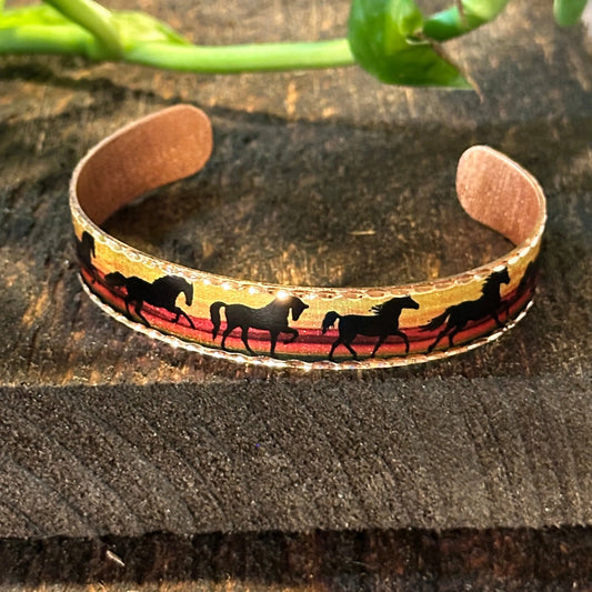 Handmade Boho WesternCopper Estuarian Galloping Horse Design Bracelet, Gift Box