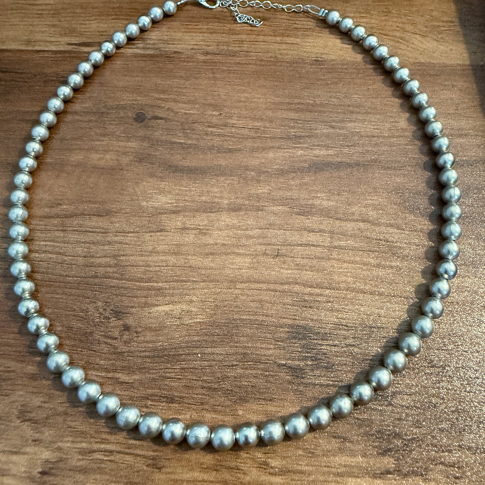 Elevate your style with the stunning 16 inch 6 mm silver plated beads necklace . This exquisite piece is designed to add a touch of elegance to any outfit, combining handcrafted artistry with modern fashion sensibilities.