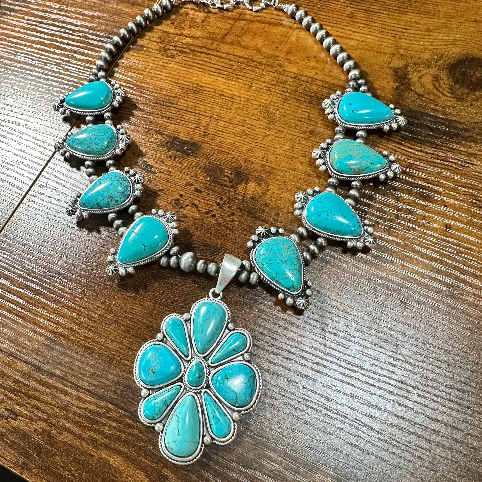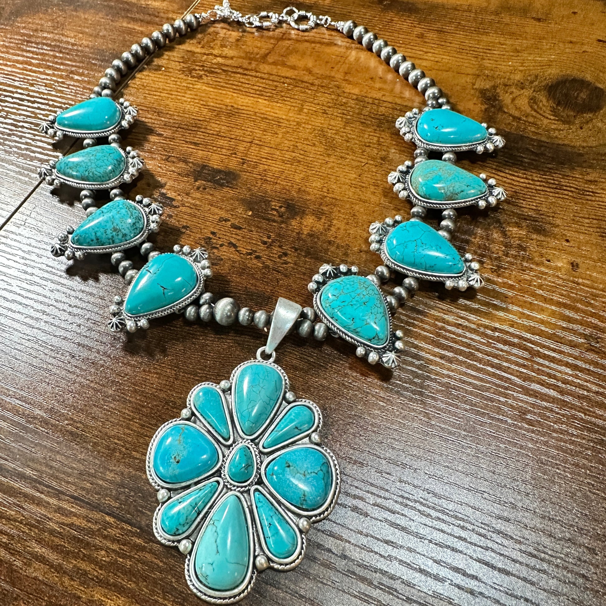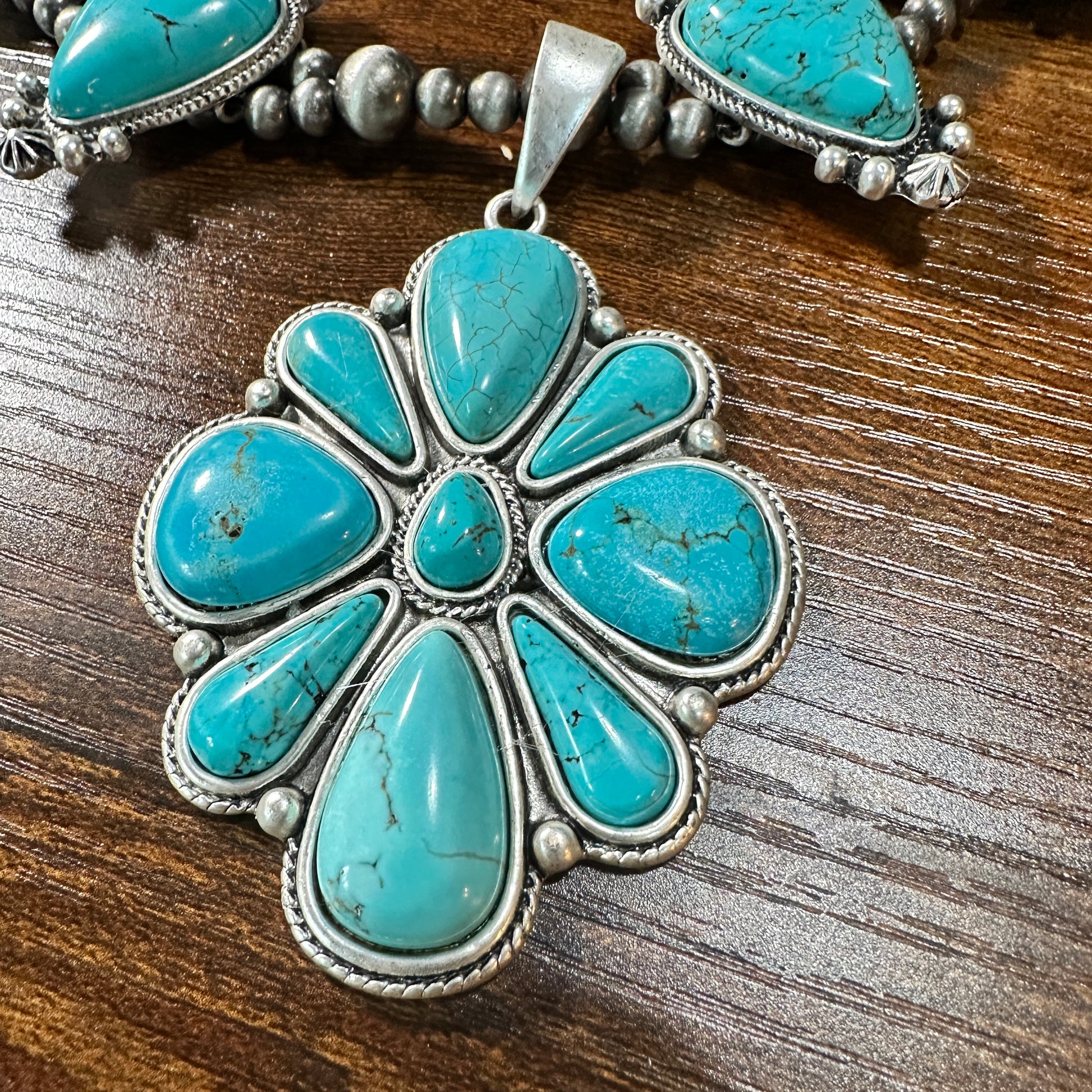 Squash Blossom Turquoise Necklace, Southwestern Cowgirl Necklace, Ships in Gift Box