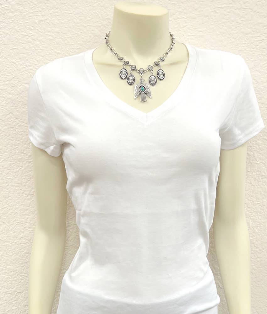 Why to buy this product? The Thunderbird Turquoise Necklace is a standout Southwestern statement that pairs well with casual or dressy looks. From ISAC Trading Inc, a trusted brand known for authentic jewelry, it combines durable construction with unique concho charms and turquoise detailing. With adjustable length, a comfortable weight, and skin-safe materials, this piece is designed for daily wear and lasting style.
