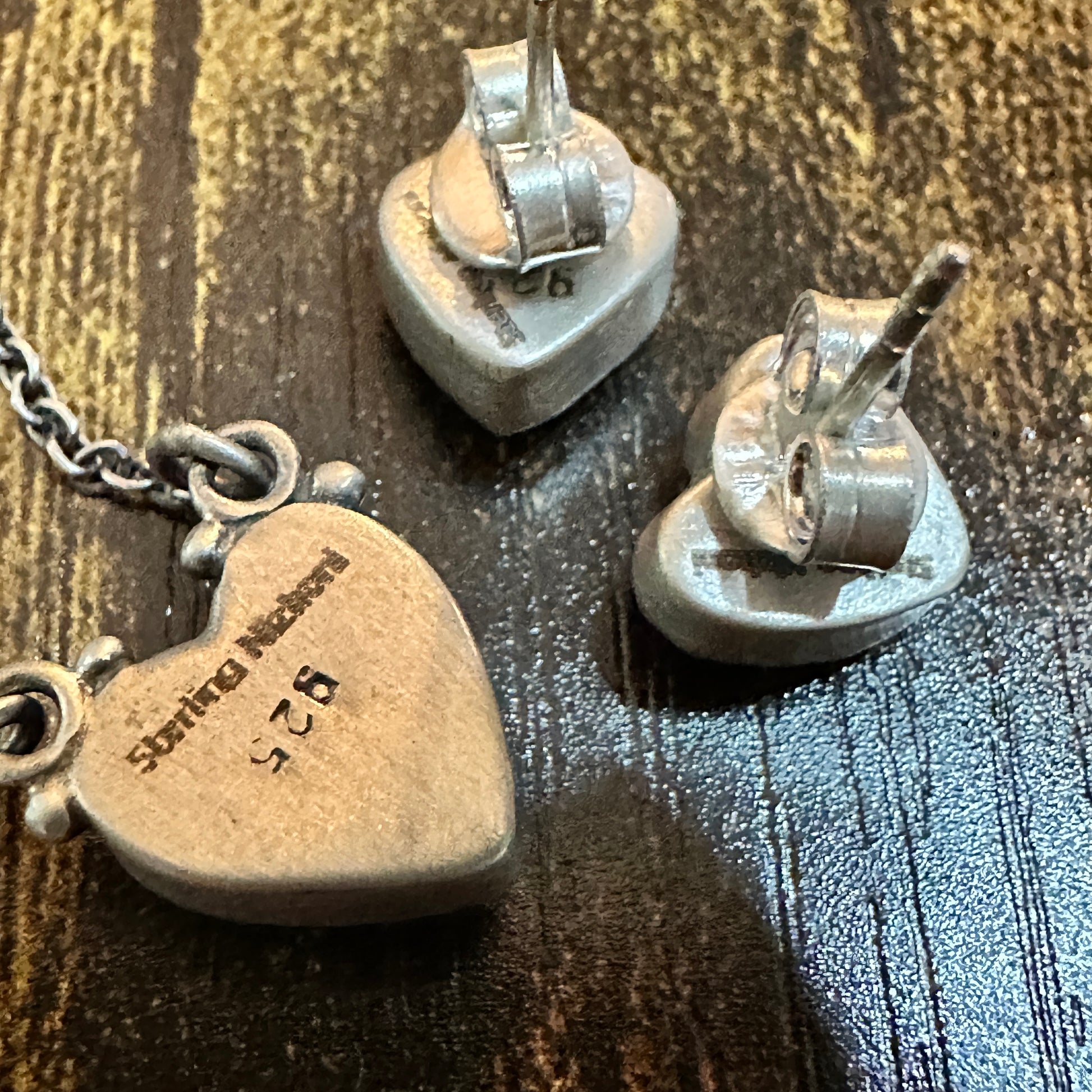Indulge in timeless elegance with this handmade sterling silver heart Dahlia Rose necklace and earrings set, signed by the artist for a unique, refined look.