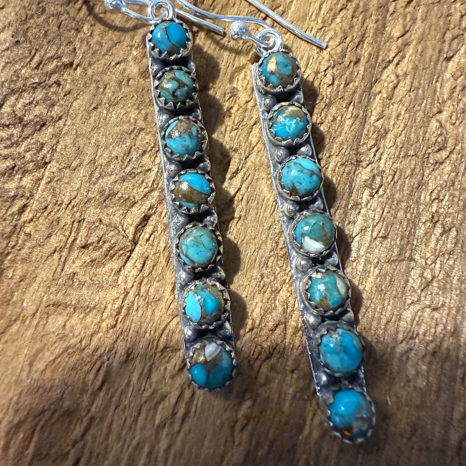 Elegant and enduring, this pair showcases blue copper turquoise set in 925 sterling silver, crafted by skilled artisans for lasting beauty.