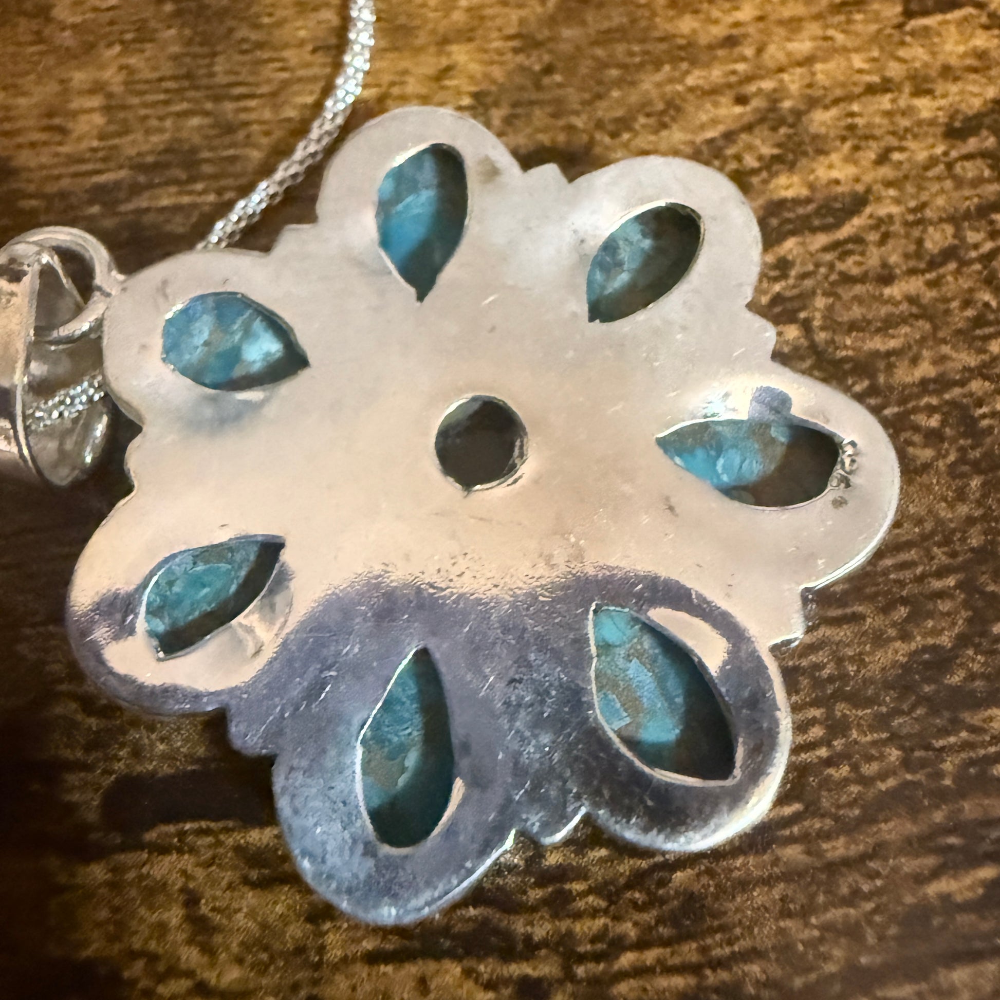 Blue Copper Turquoise Gemstone Pendant Necklace 925 Sterling Silver Handmade