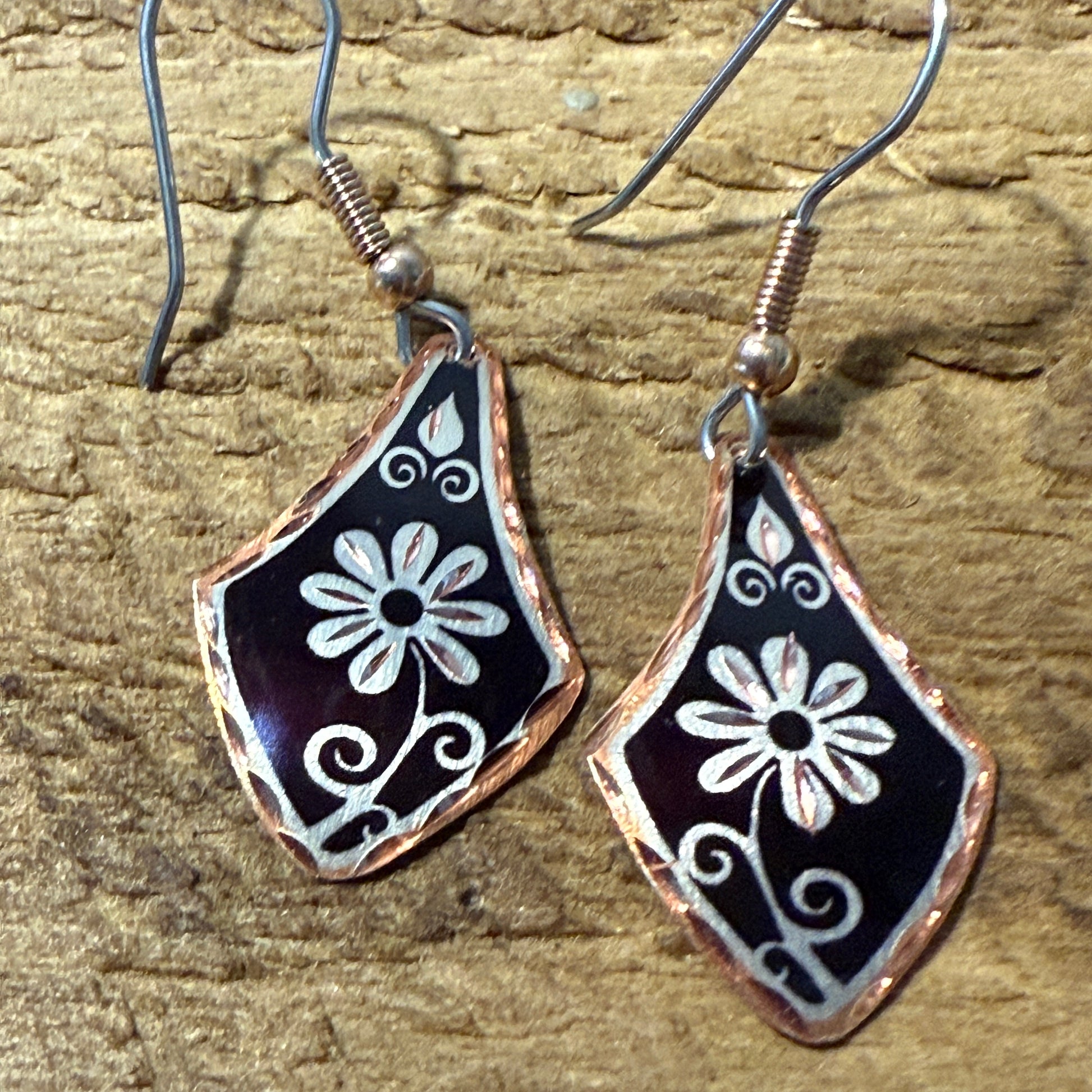 Handcrafted Copper Black Diamond Rose Gold Floral Wire Drop Earrings Gift Box