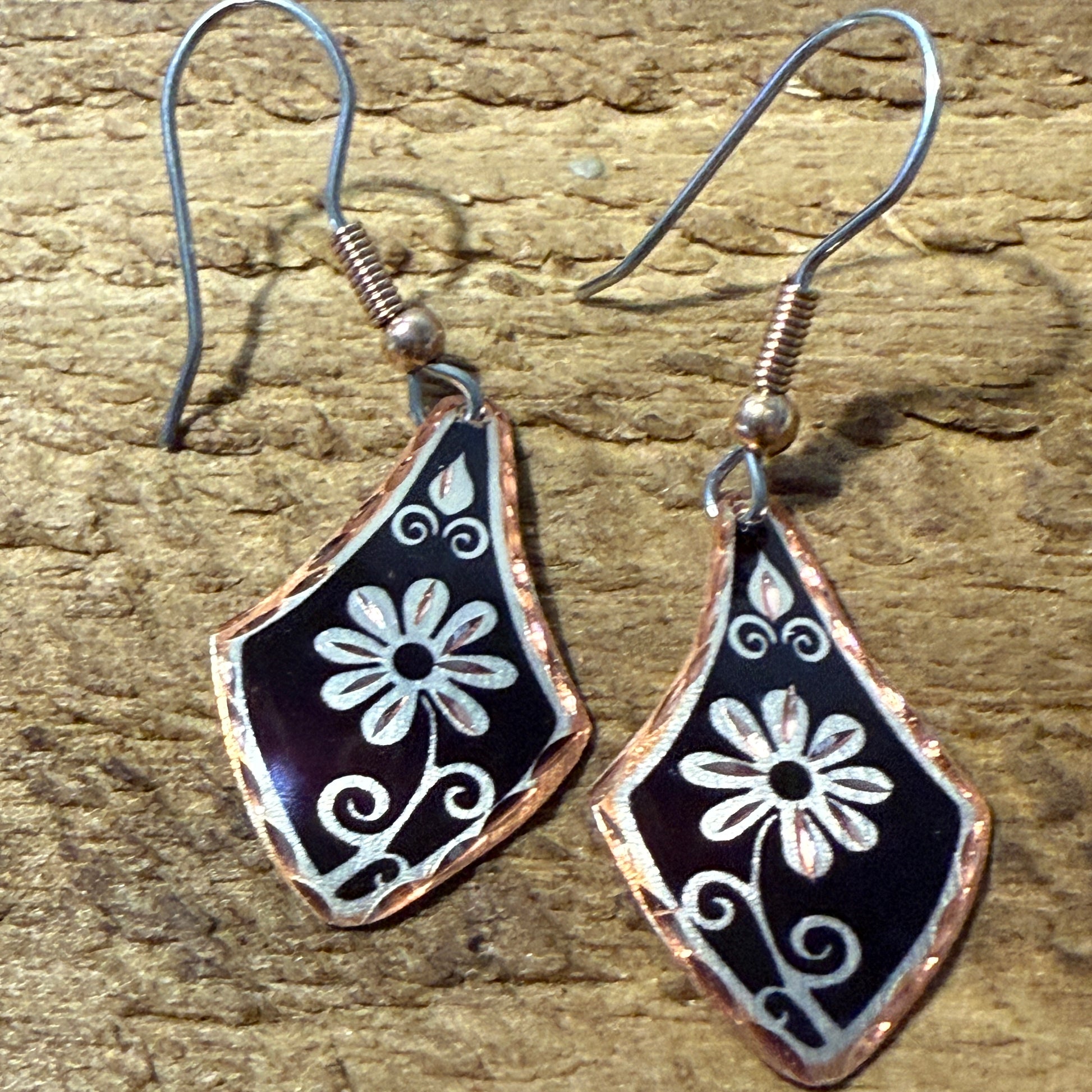 Handcrafted Copper Black Diamond Rose Gold Floral Wire Drop Earrings offer artisanal elegance with a warm copper base, a rose gold-tone finish, and delicate floral wirework for day-to-night sparkle.