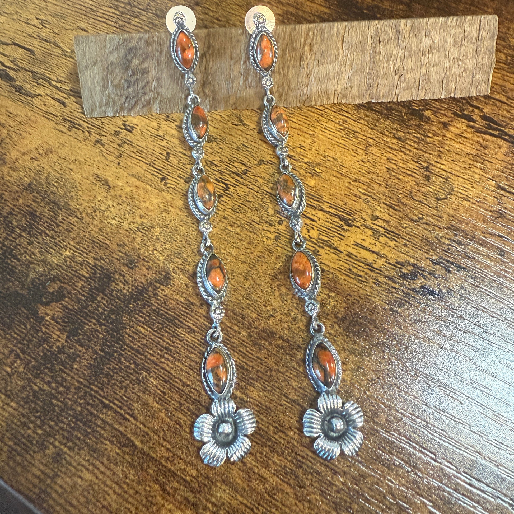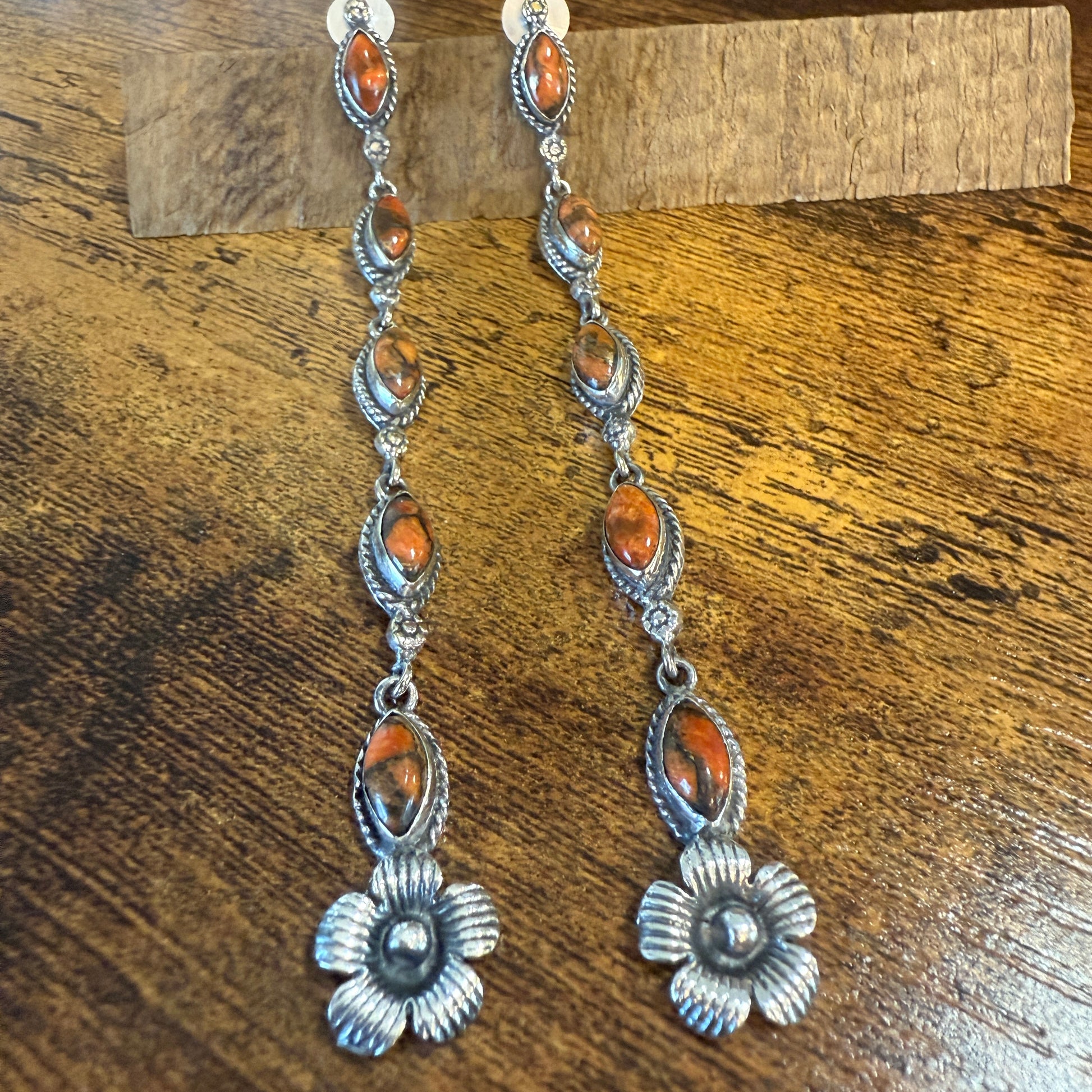 - Handmade sterling silver stud earrings featuring copper sponge coral accents and turquoise gemstone for a bright, one-of-a-kind look.