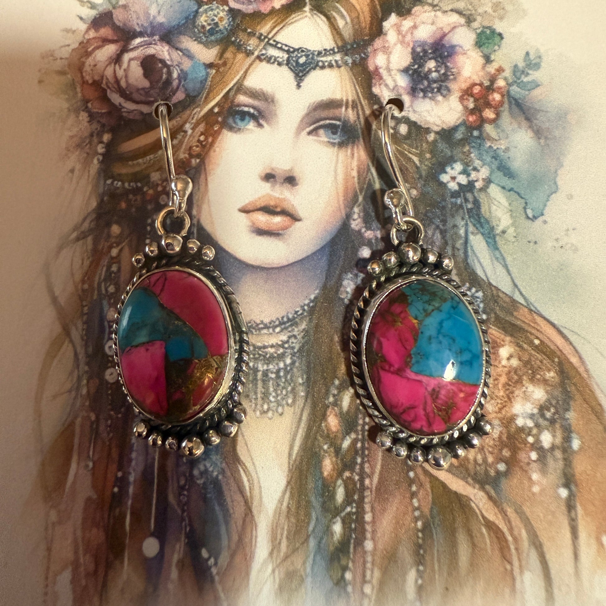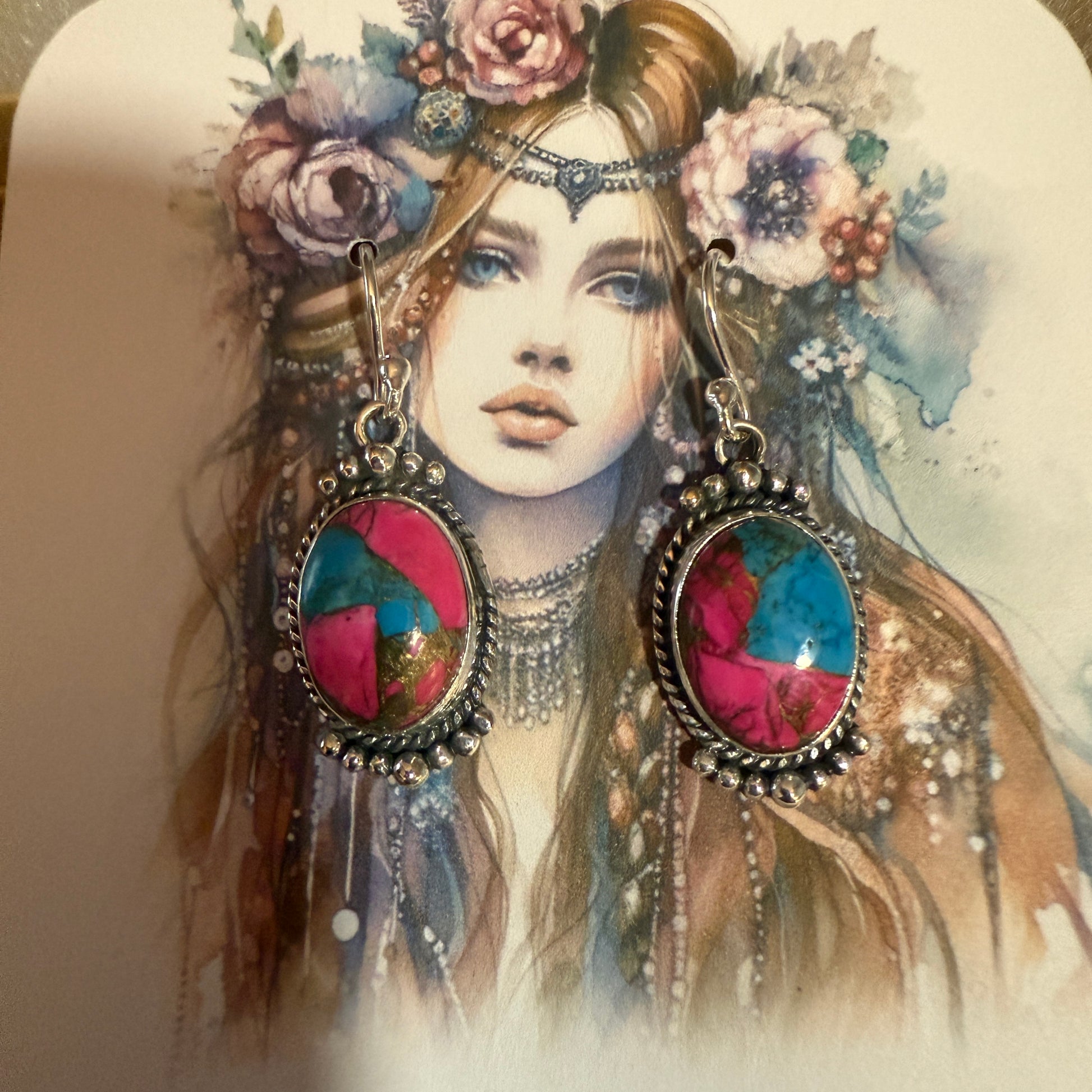 Cotton Candy Dahlia Turquoise Earrings 925 Sterling Silver Handmade Jewelry