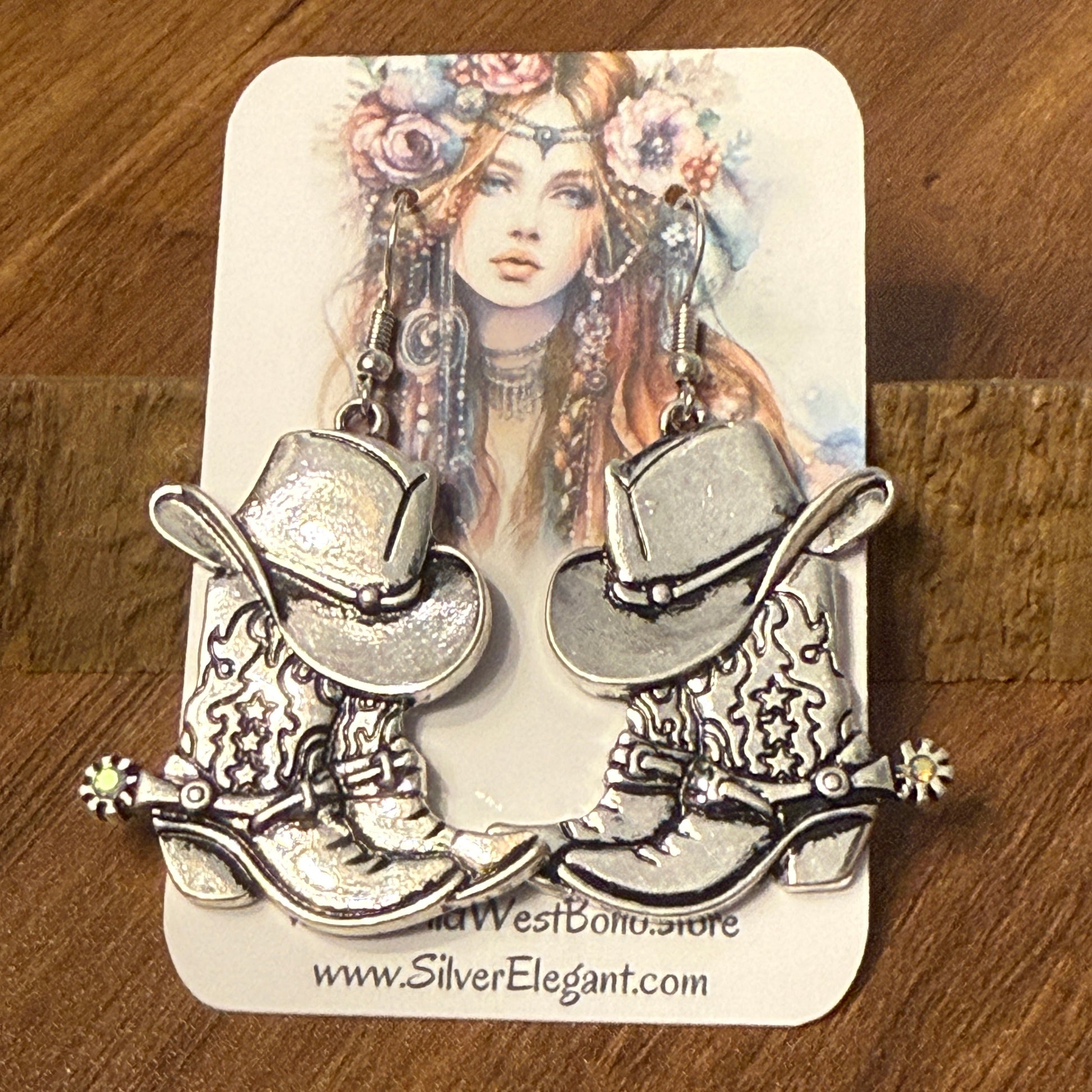 Get ready to wrangle up compliments with a playful Western twist—these Cowboy Hat and Boots with Spurs Earrings add instant cowgirl charm to any look.