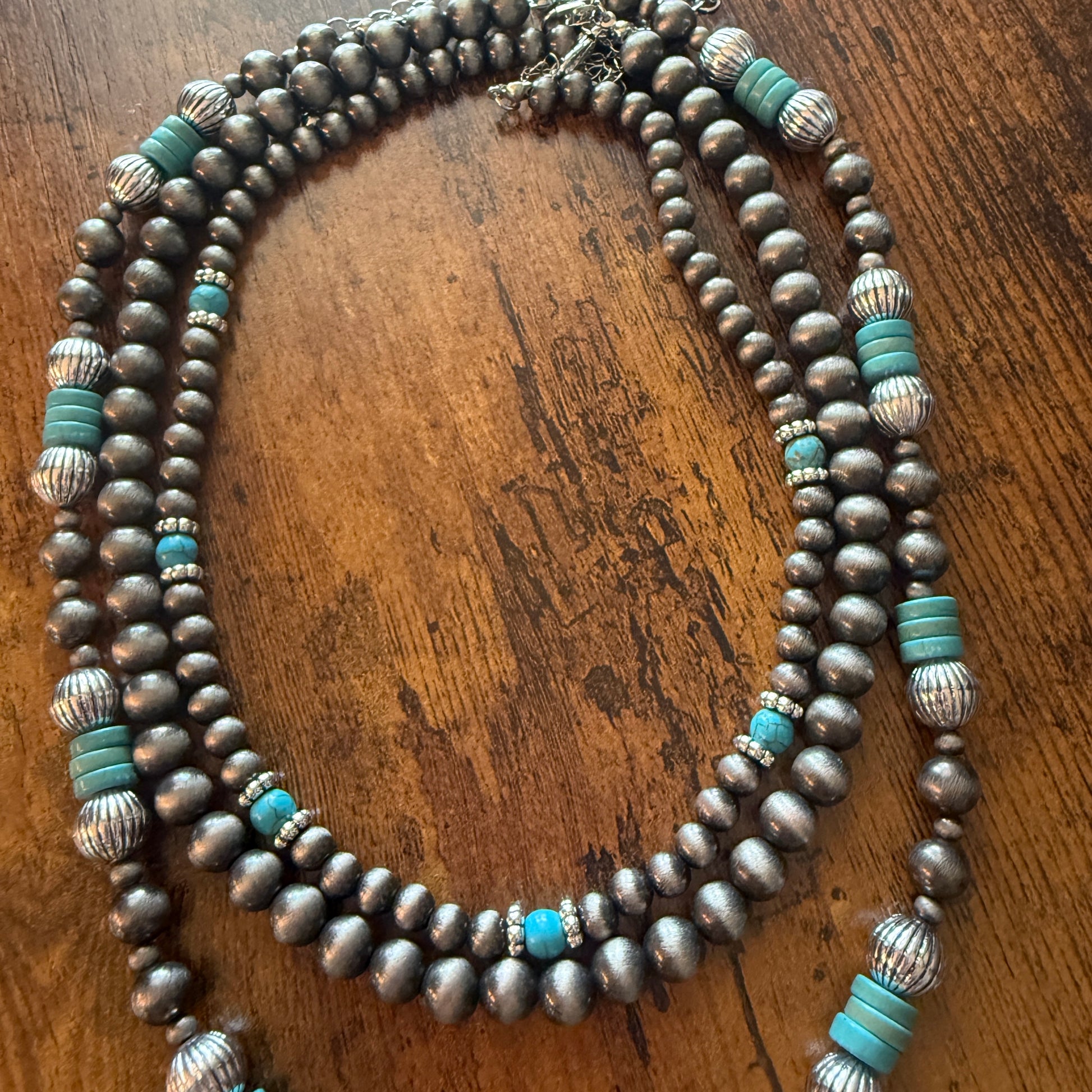 Discover a chic, versatile layered necklace set that pairs a faux turquoise bead cross pendant with a stylish two-layer design, perfect for women seeking boho-inspired elegance.