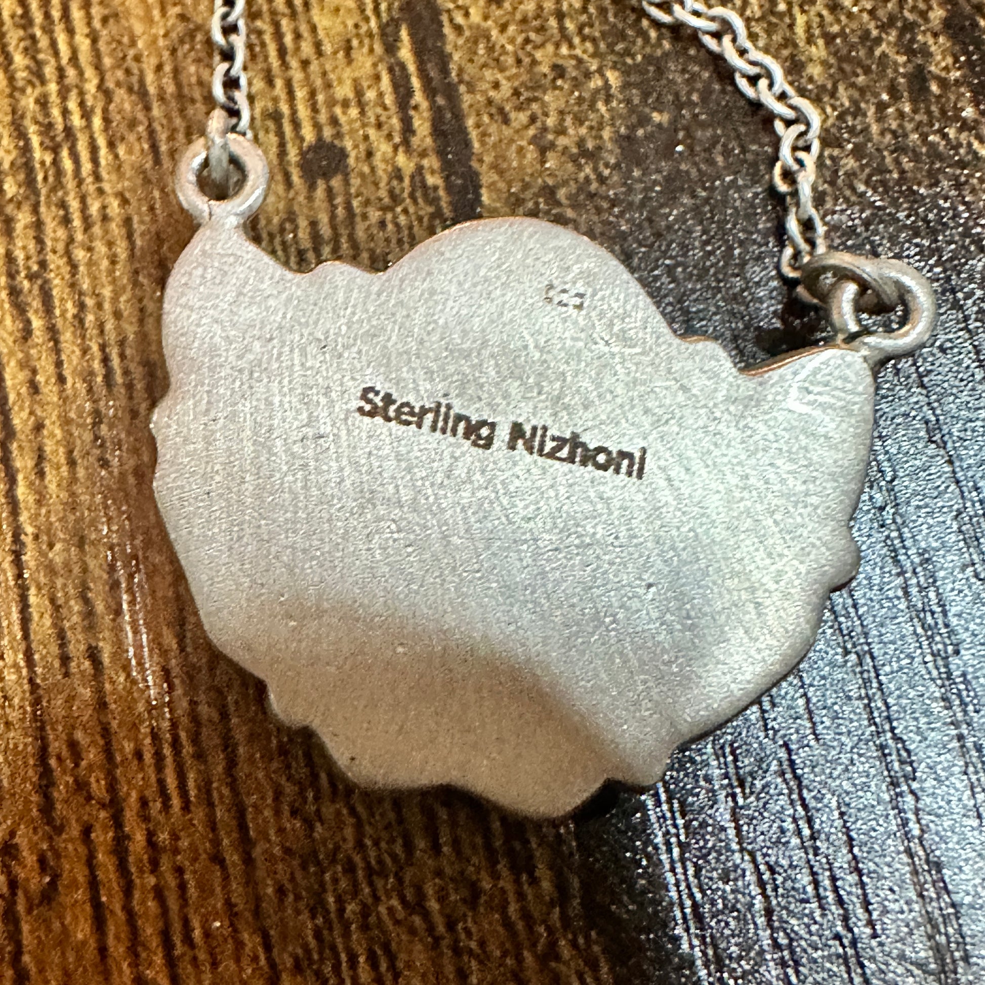 - Necklace length 16-18 inches with an adjustable chain and secure clasp; stamped Sterling and signed Nizhoni for authenticity.