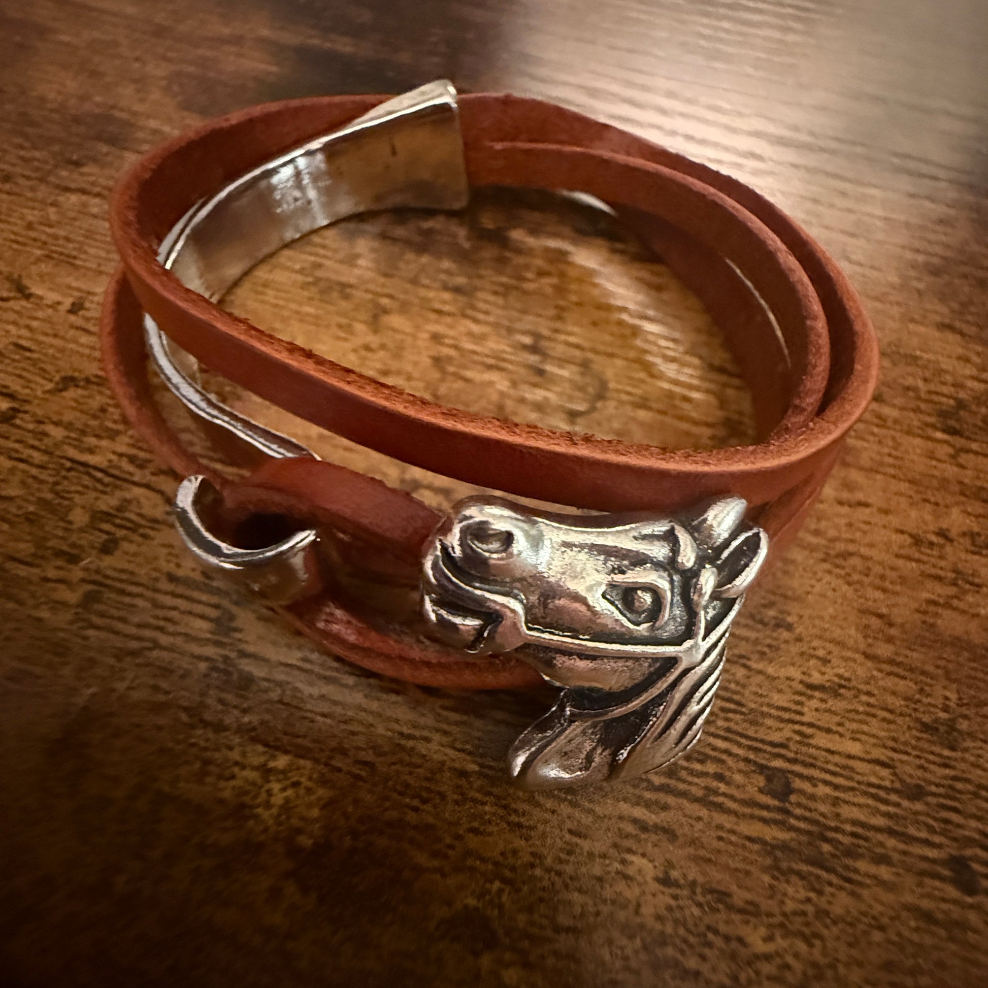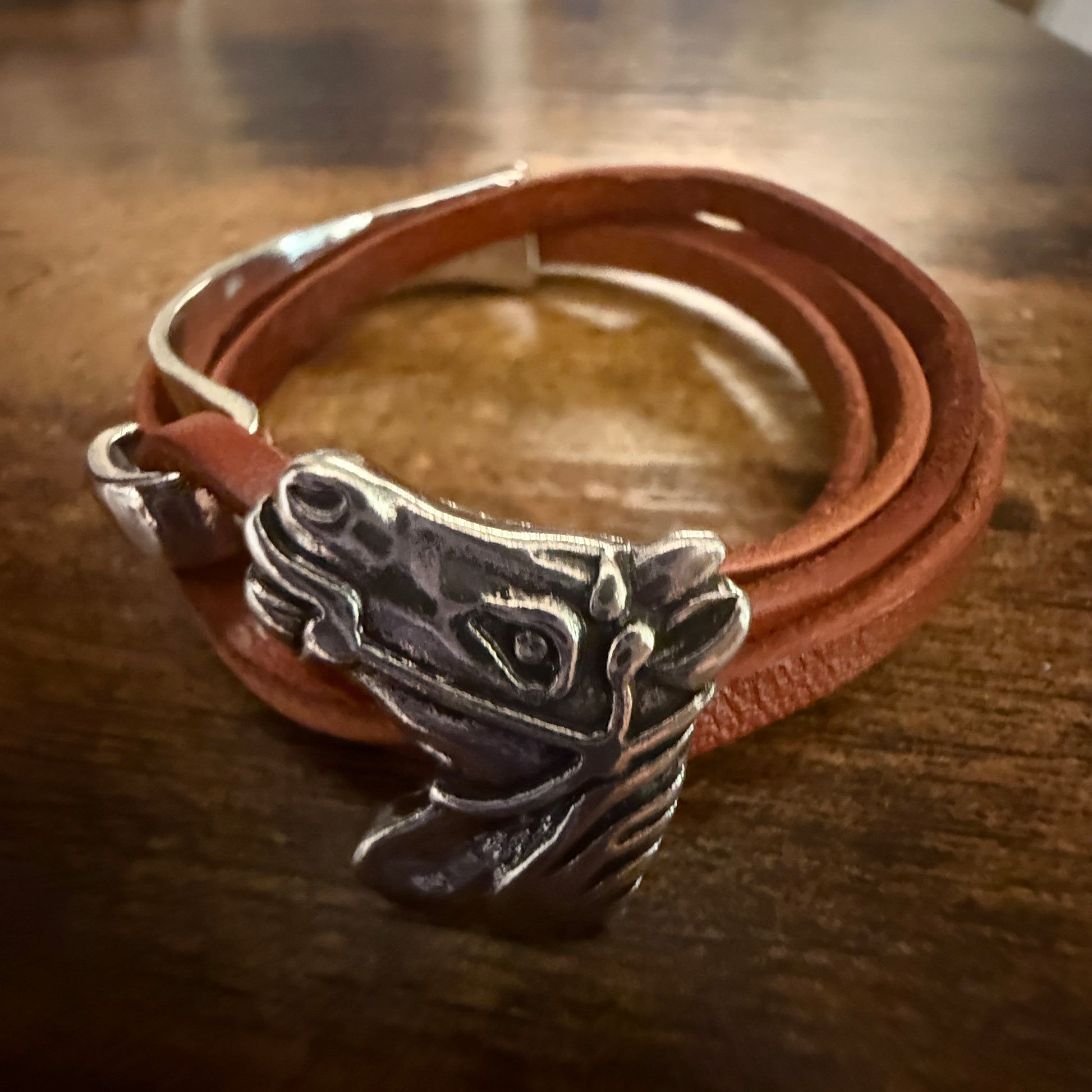 Discover a refined, adjustable cuff crafted from premium estuarian red leather that ages beautifully and elevates any outfit.