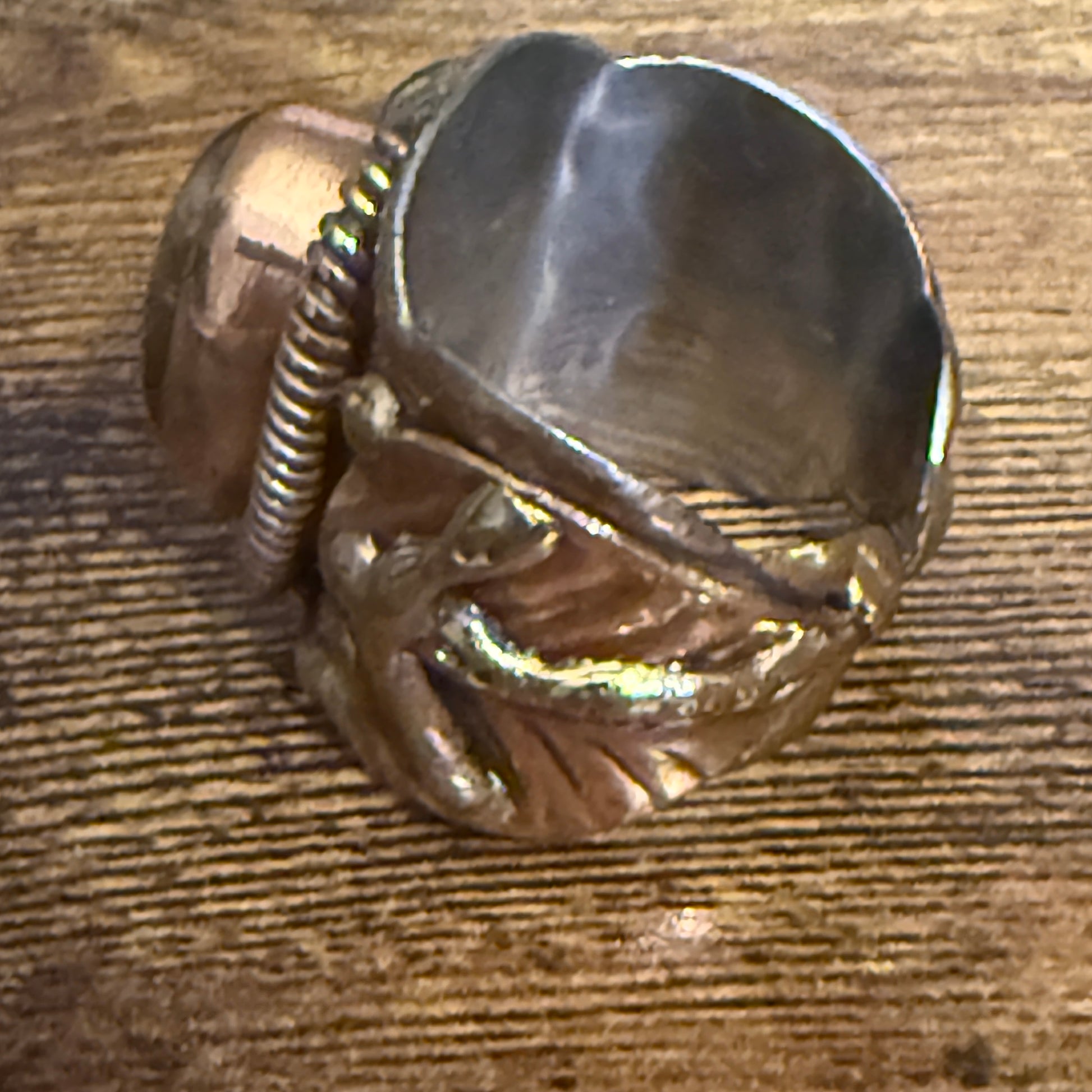 Green Labradorite Ring Adjustable Handcrafted Gemstone Mixed Metals