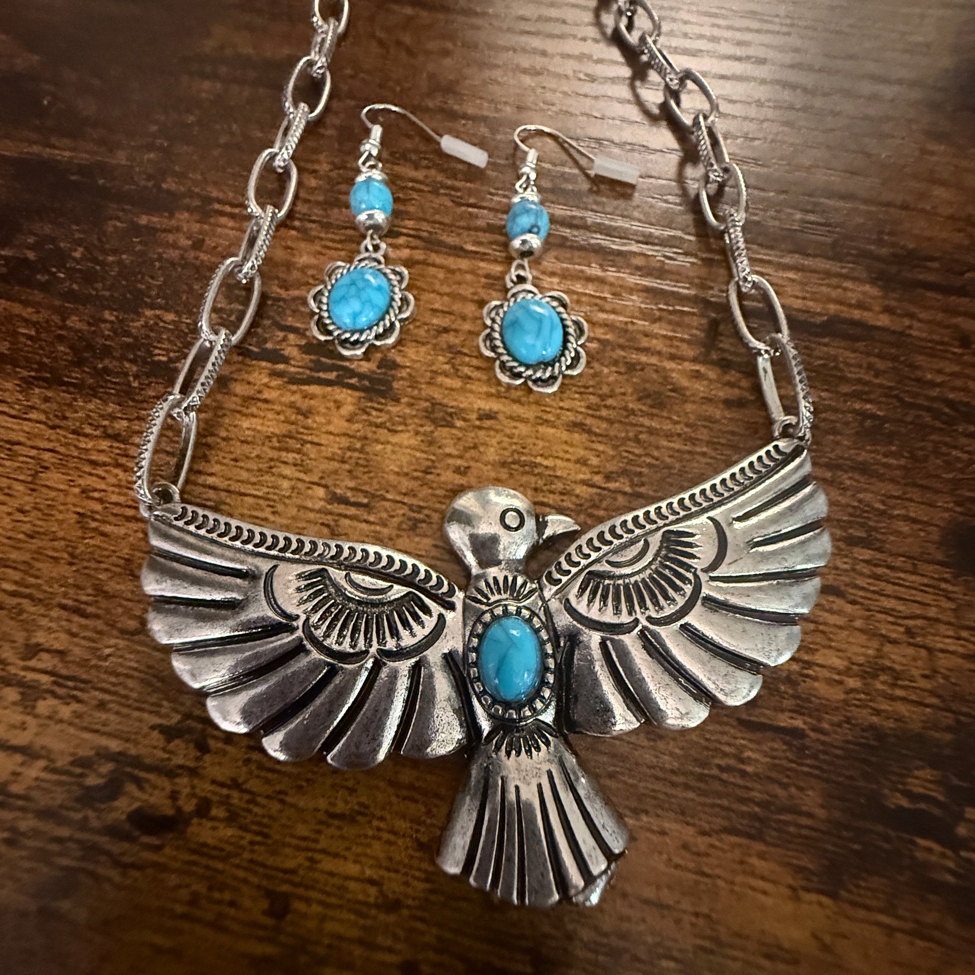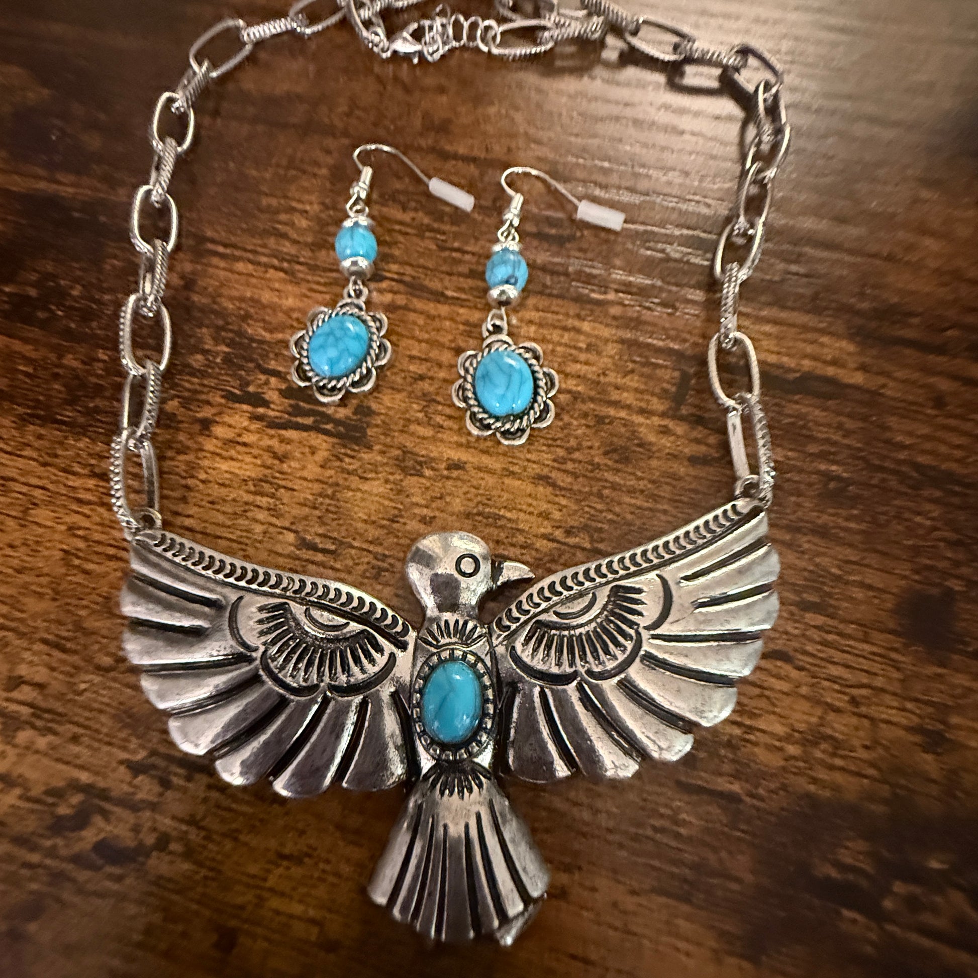 Handcrafted Thunderbird Necklace and Earrings Gift Set in Mixed Metals
