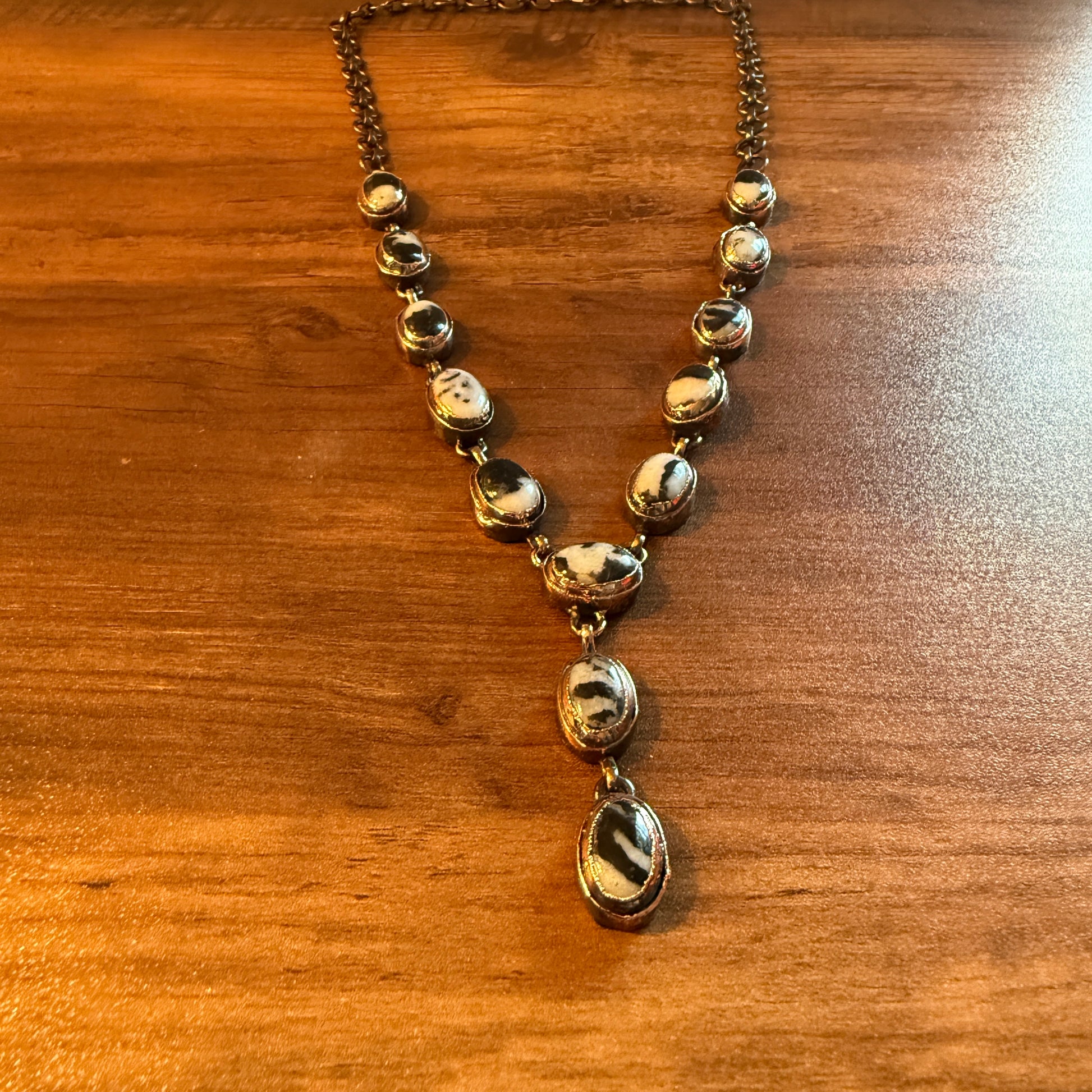 Handcrafted White Buffalo Dahlia Necklace With Copper Chain 18 Inch