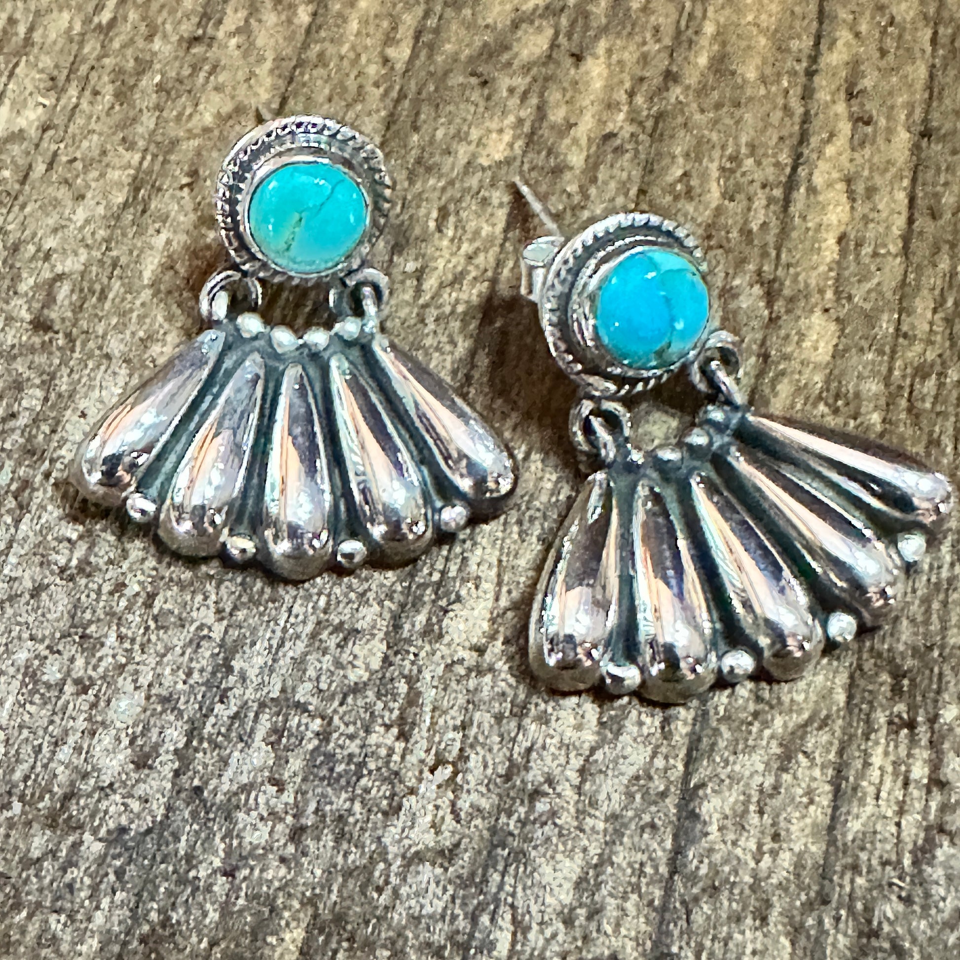 Handmade Kingman Turquoise Stud Earrings 925 Sterling Silver Signed