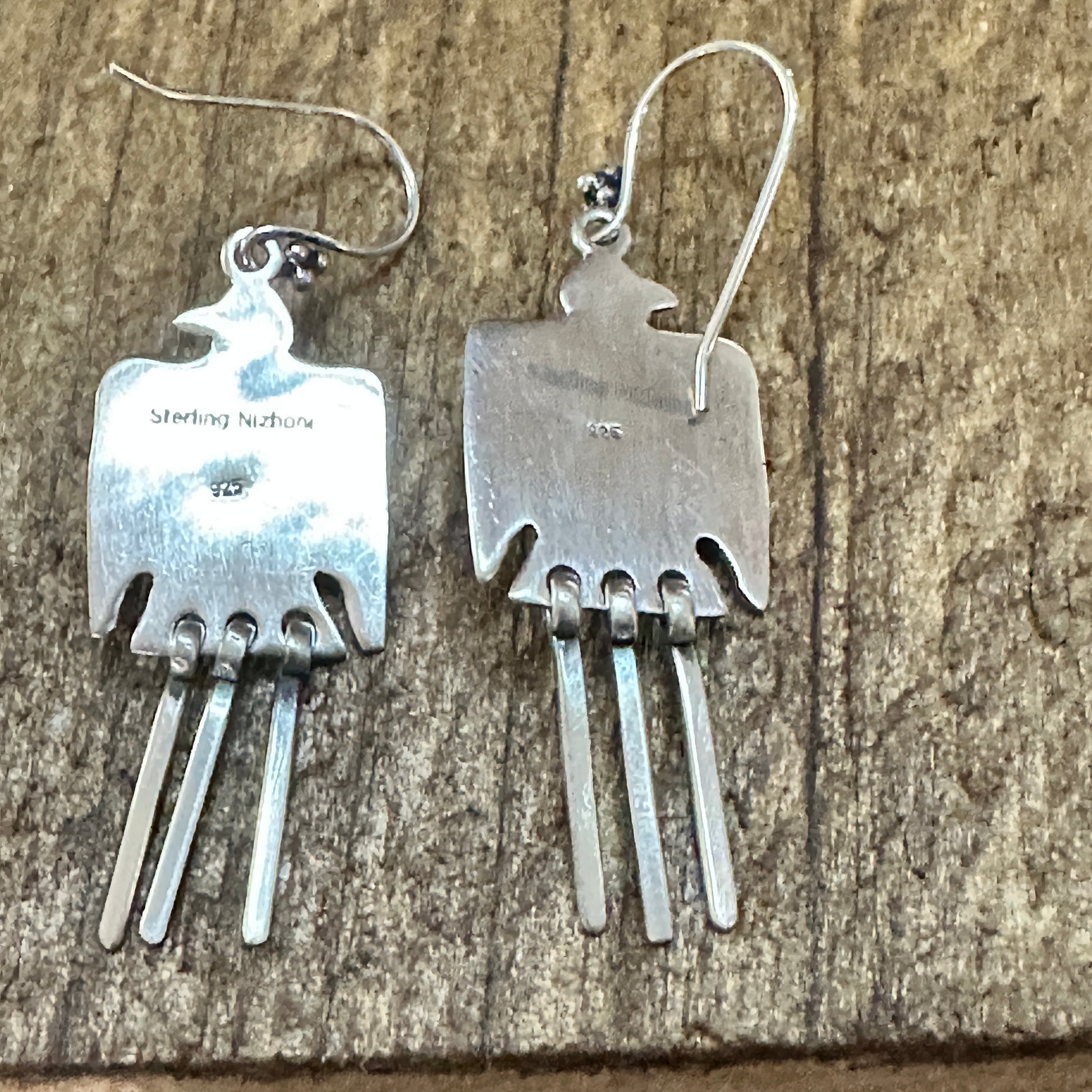 Concise, enticing description of Kingman Turquoise Thunderbird Dangle Earrings in 925 Sterling Silver, handcrafted with authentic Kingman turquoise and artisan-signed Native American-inspired craftsmanship.