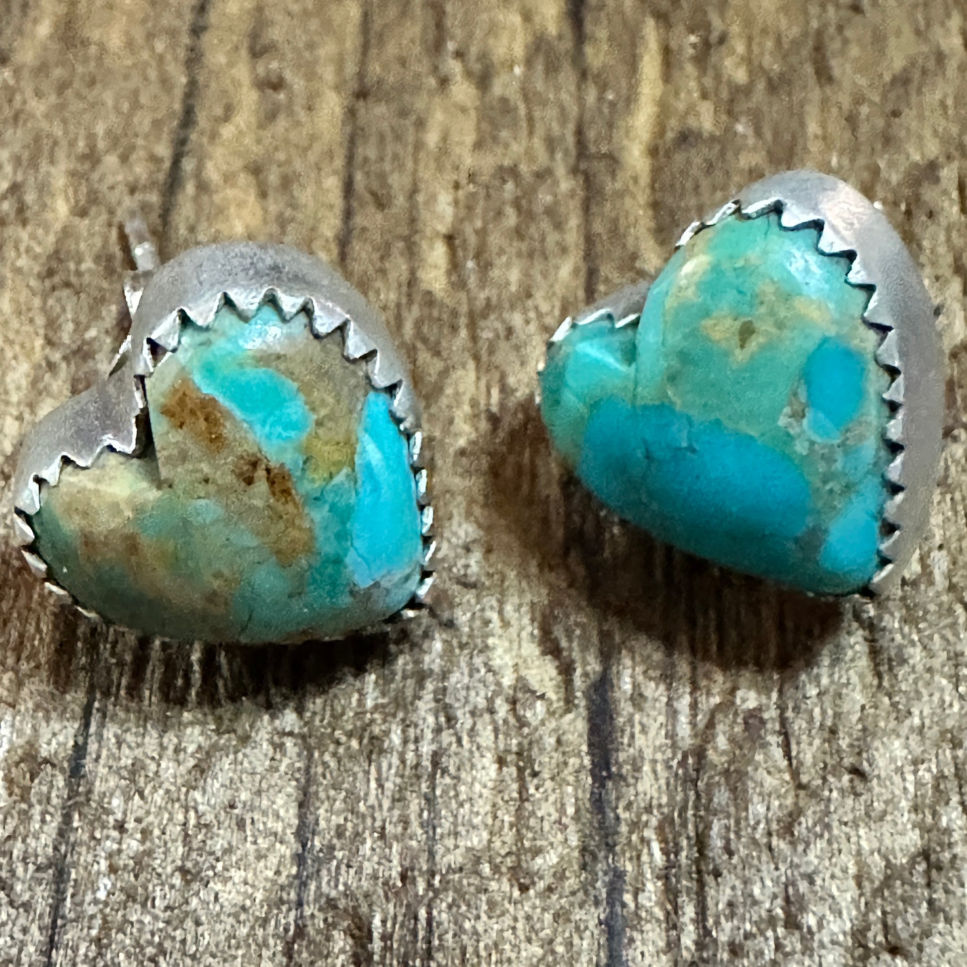 Handmade Sterling Silver Kingman Turquoise Heart Earrings — artisan-signed statement pieces that blend timeless elegance with modern charm.