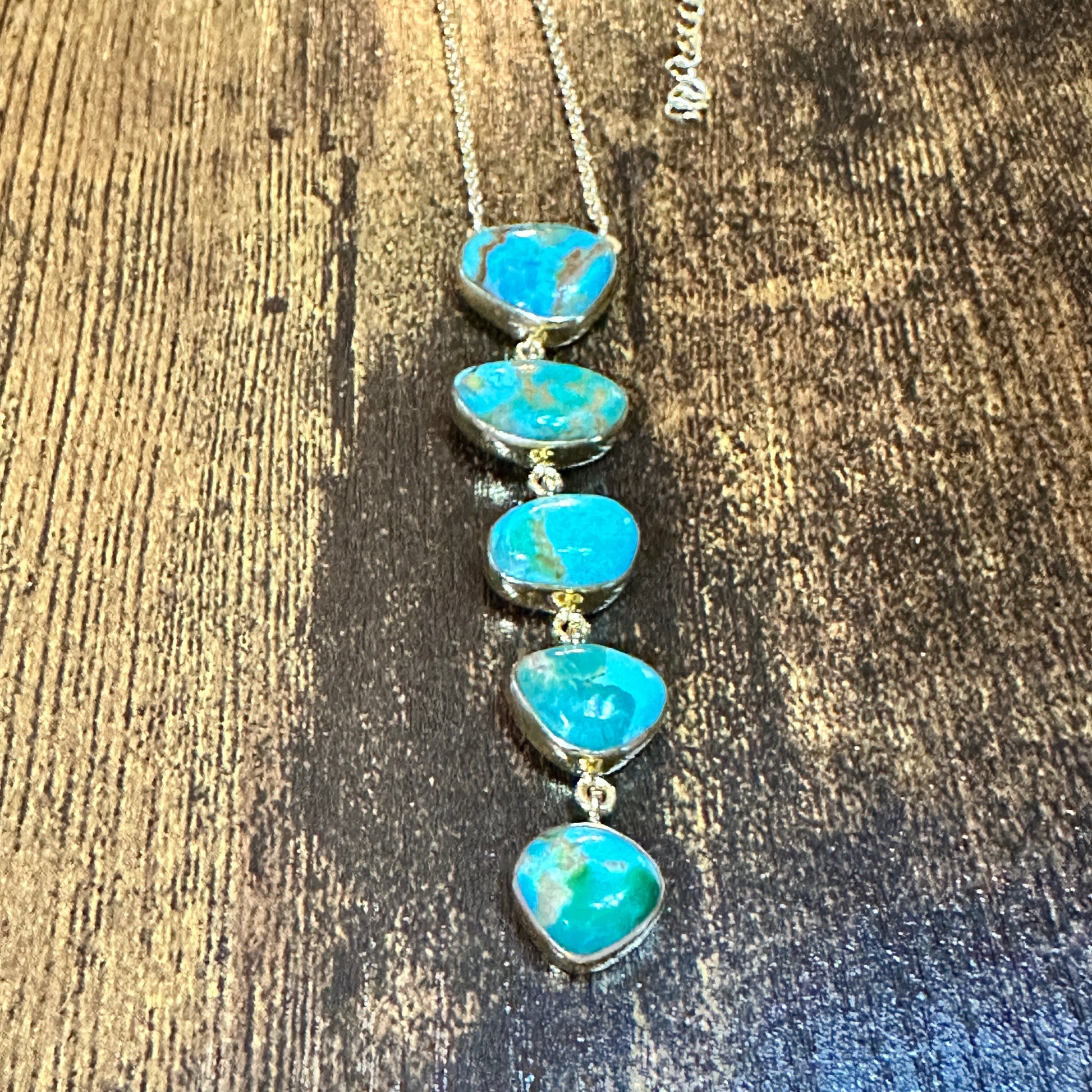 Handmade Kingman Turquoise 5 Stone Drop Necklace Gold Plated