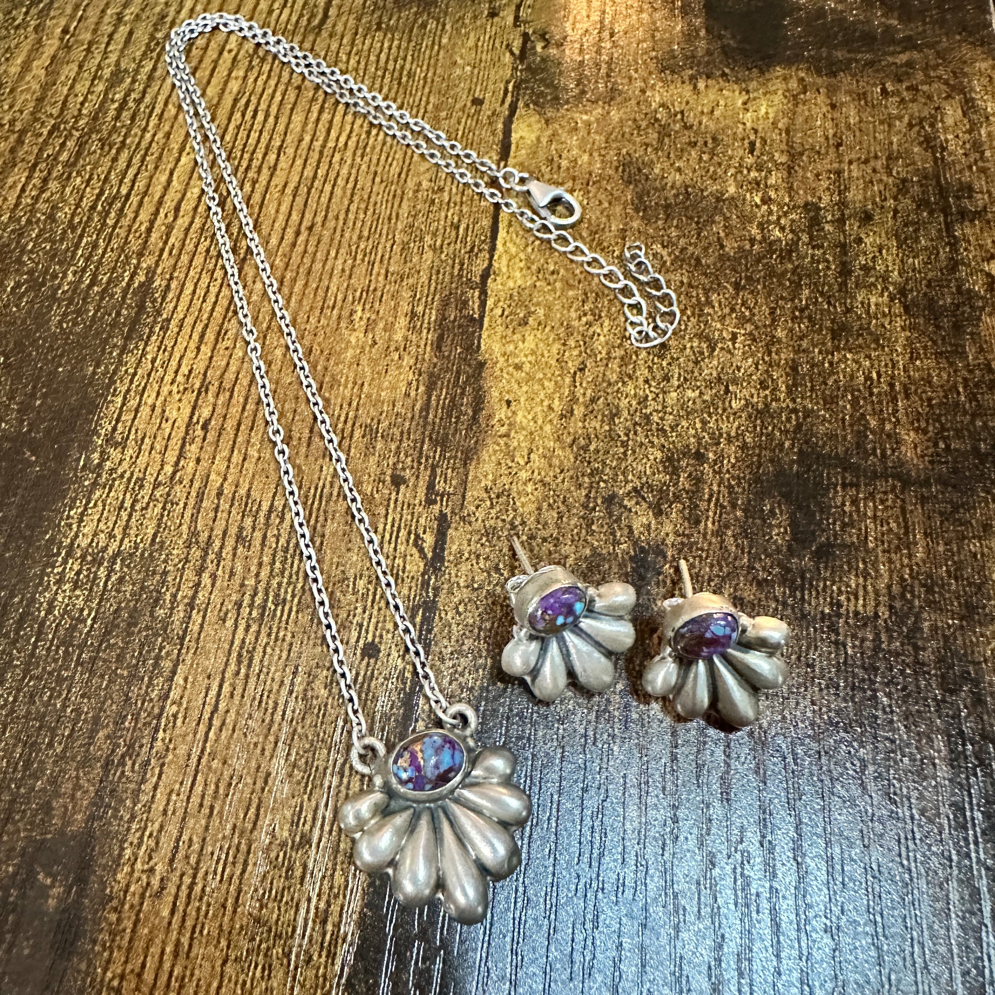 Elevate your style with a handmade sterling silver set featuring Purple Mojave turquoise, crafted and signed by Nizhoni.