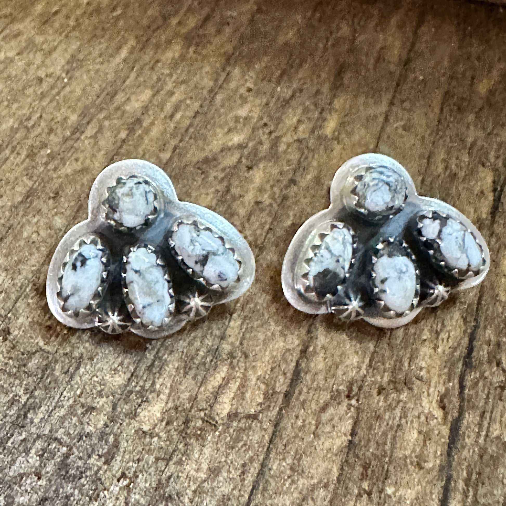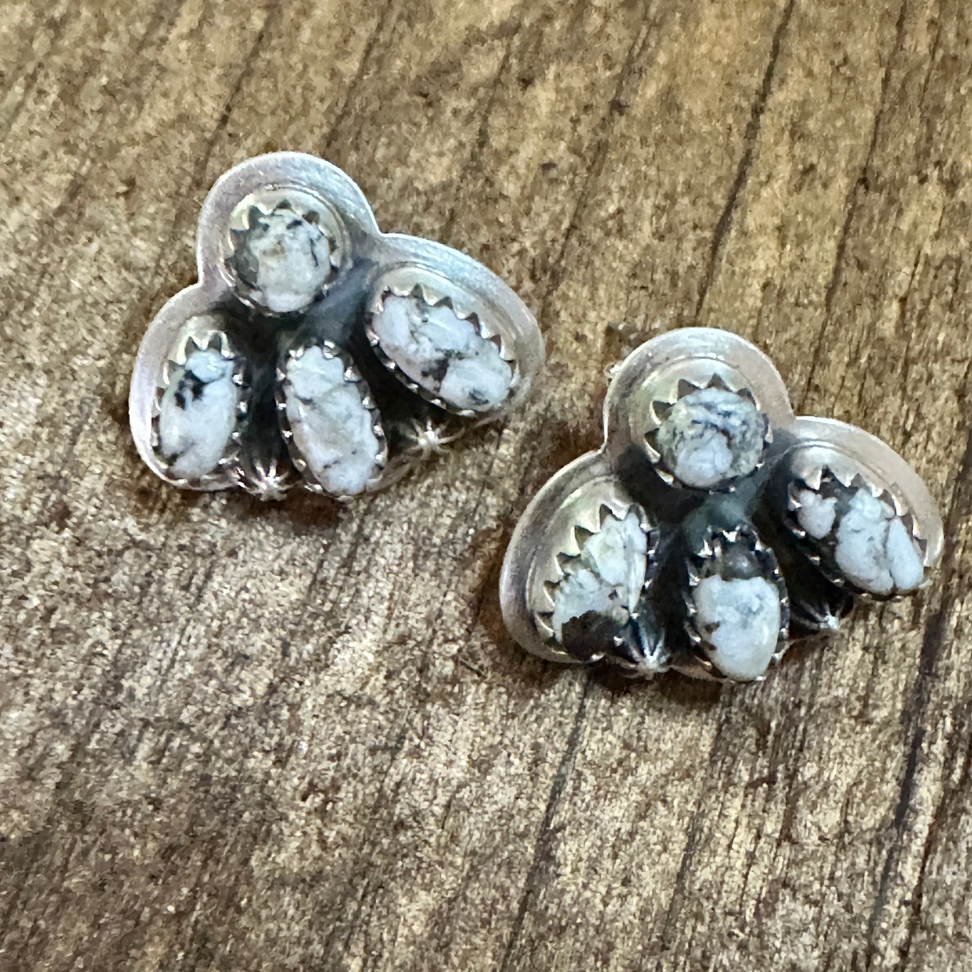 Handmade White Buffalo Dalhia Natural Stone Stud Earrings 925 Silver Signed