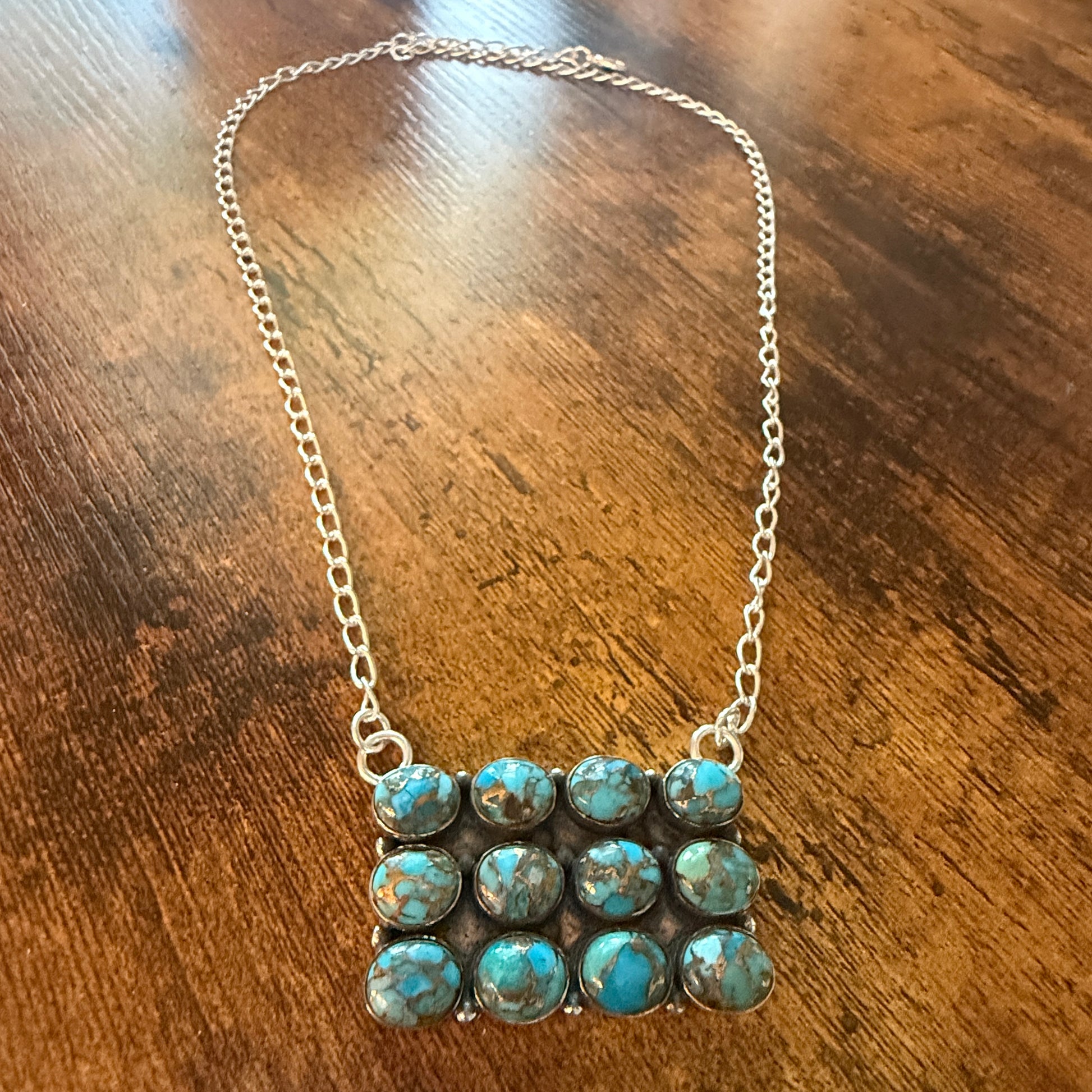 Discover the serene beauty of authentic Kingman Blue Turquoise set in 925 sterling silver—an artisanal necklace that blends natural charm with timeless elegance.
