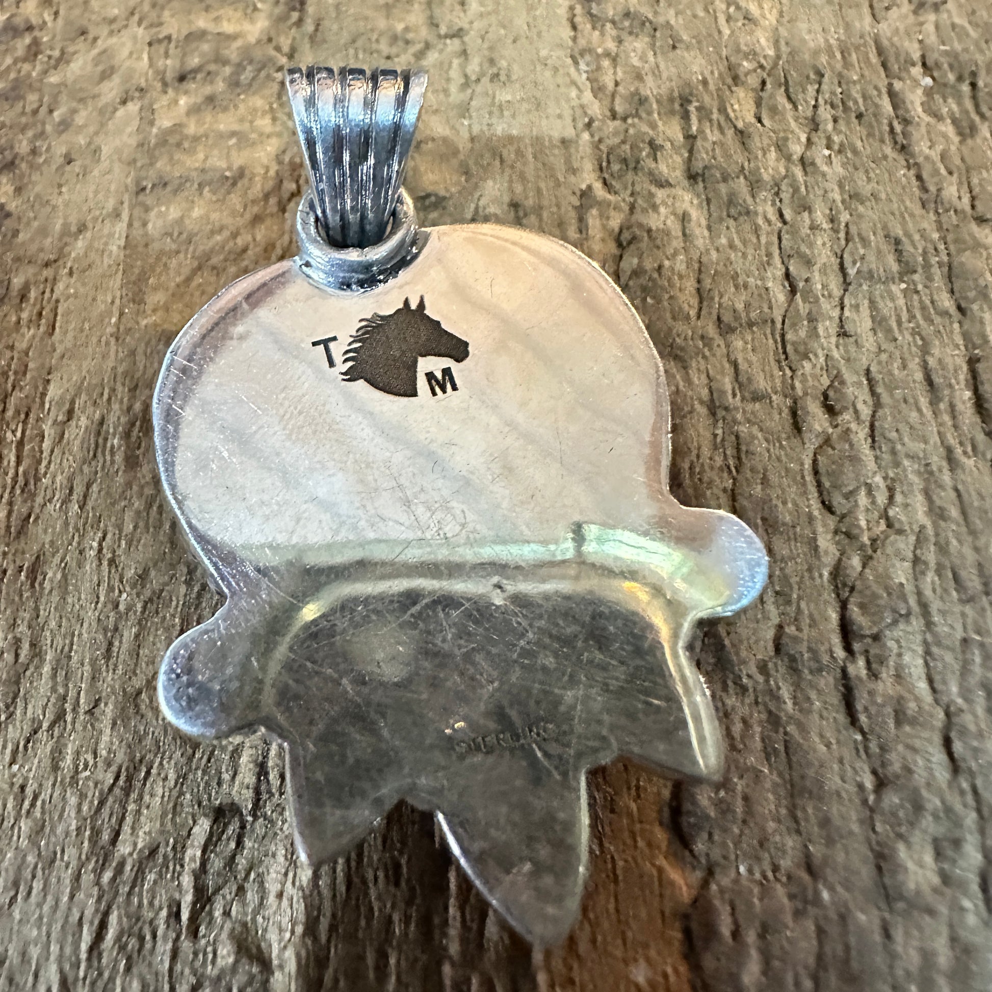 Elegant heart pendant blending Kingman turquoise and pearls in polished sterling silver, signed by the artist for timeless luxury.