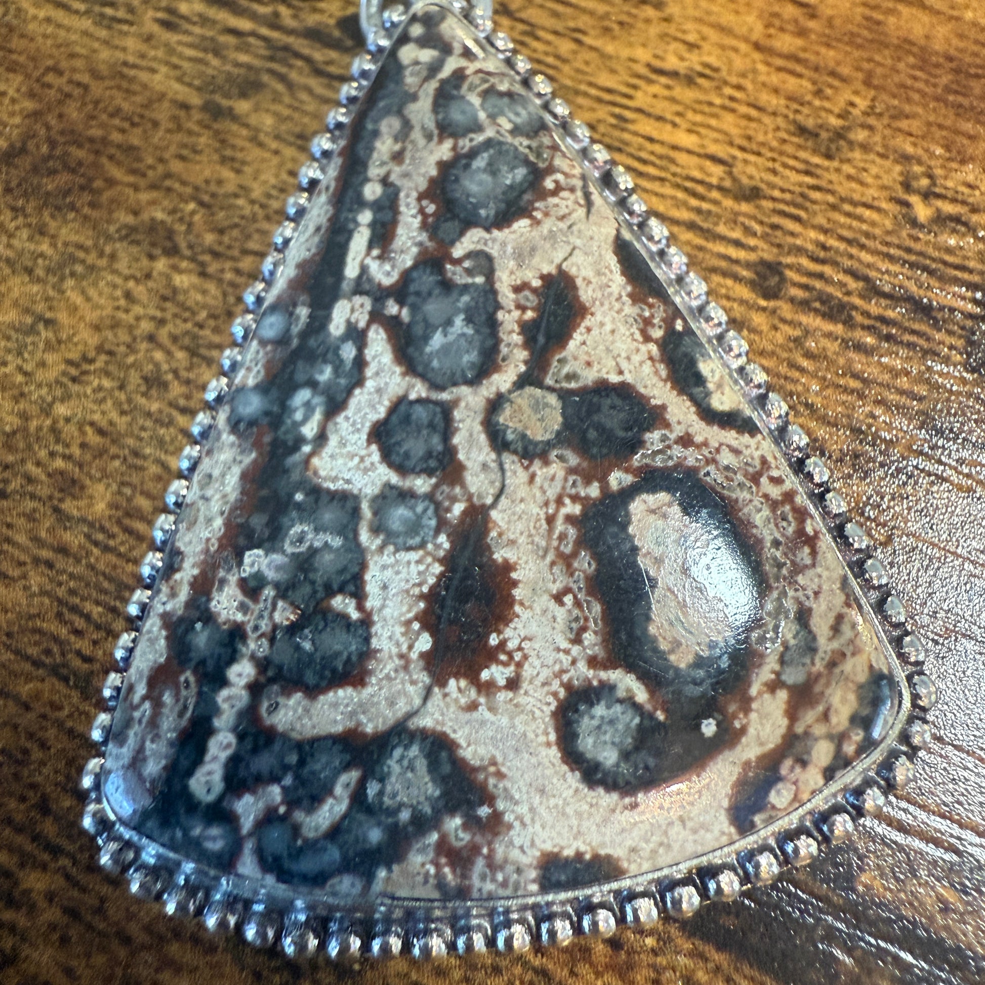 Leopard Skin Jasper Gemstone Ethnic Chain Necklace in 925 Sterling Silver, 18 inches, a unique, earthy centerpiece that elevates boho and formal looks.