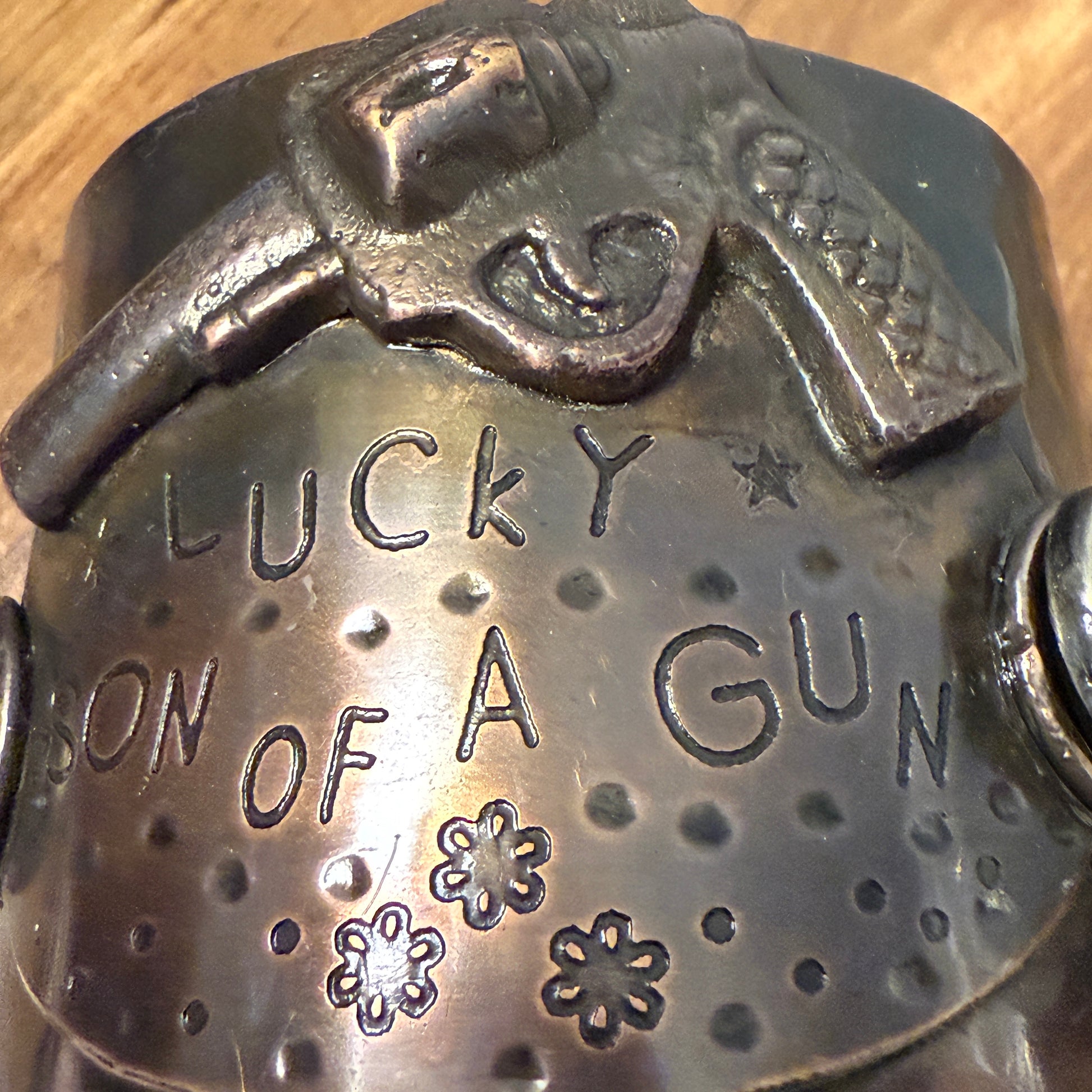 Lucky Son Of A Gun Wide Metal Cuff Bracelet For Men Bold Statement Jewelry Gift Idea