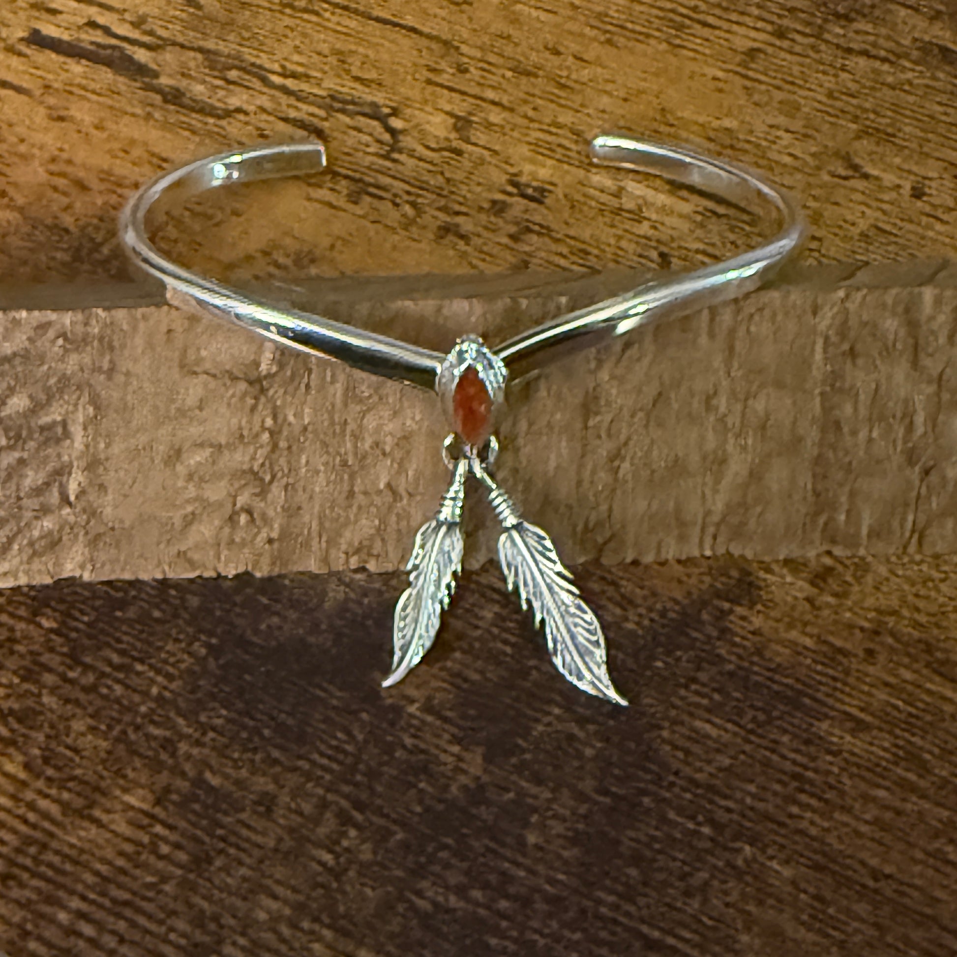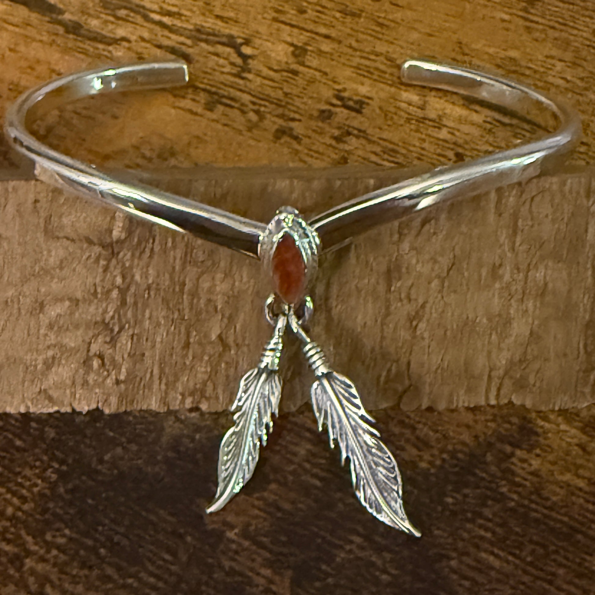 Native American Spiny Oyster Feather Sterling Silver Bracelet Tahe