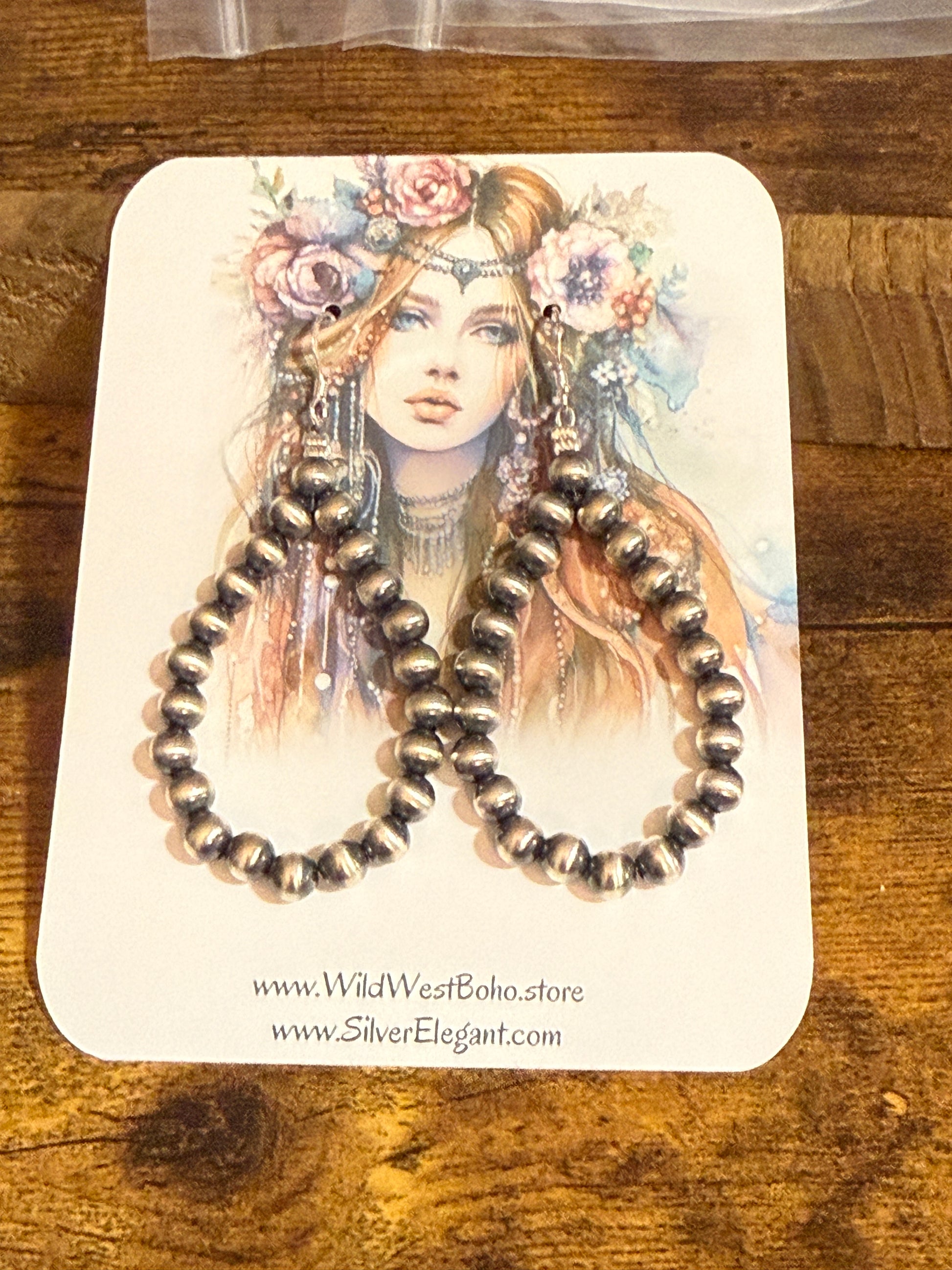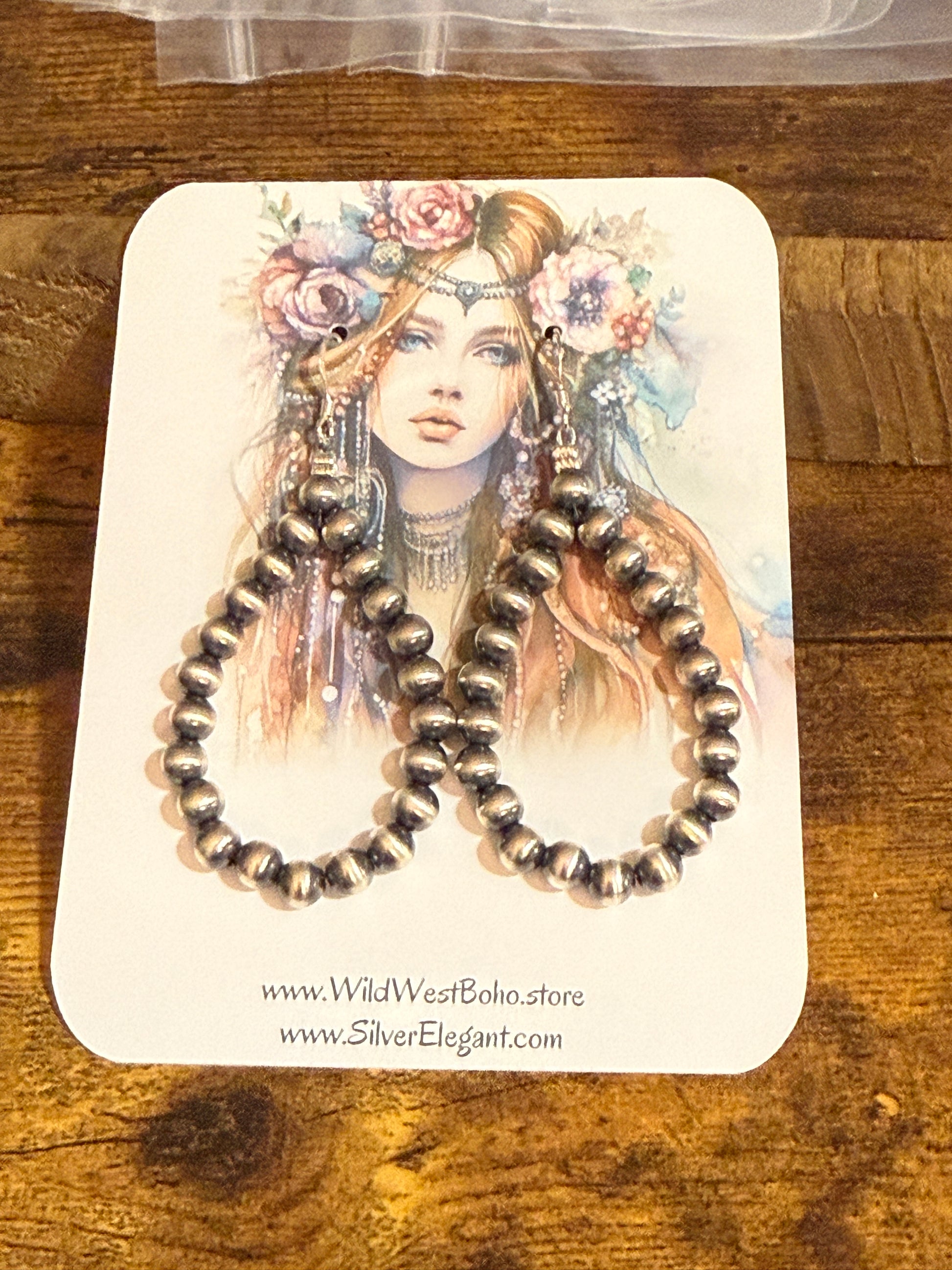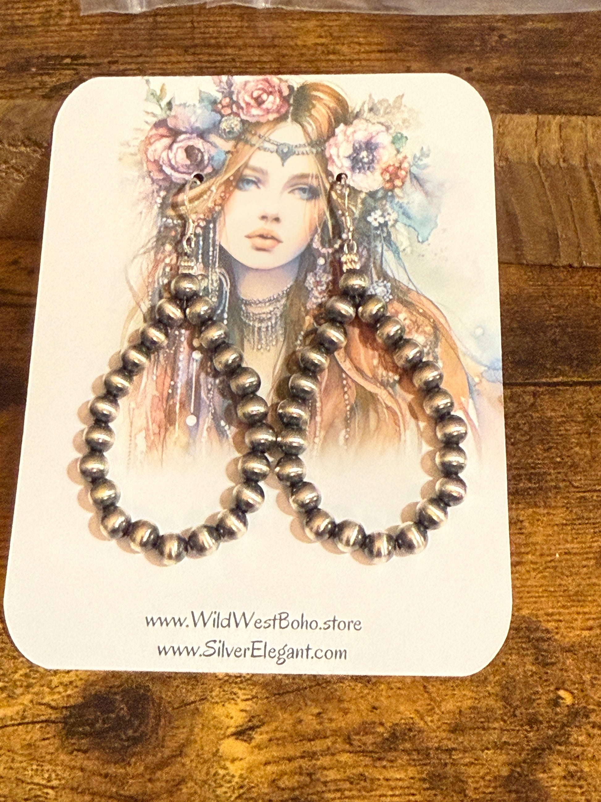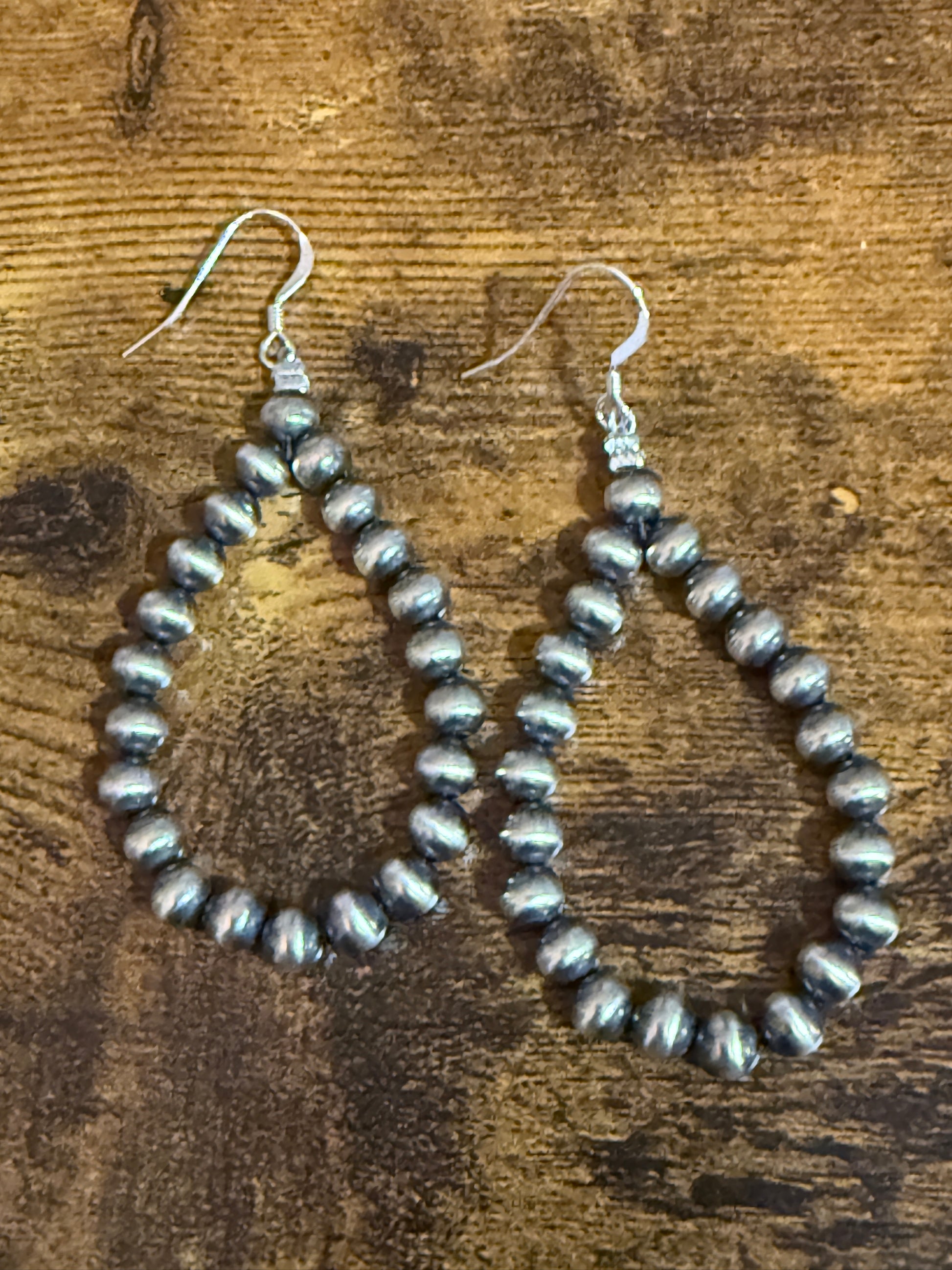 - Sterling Silver loop dangle earrings featuring handcrafted round Navajo Pearls for an authentic Native American design.