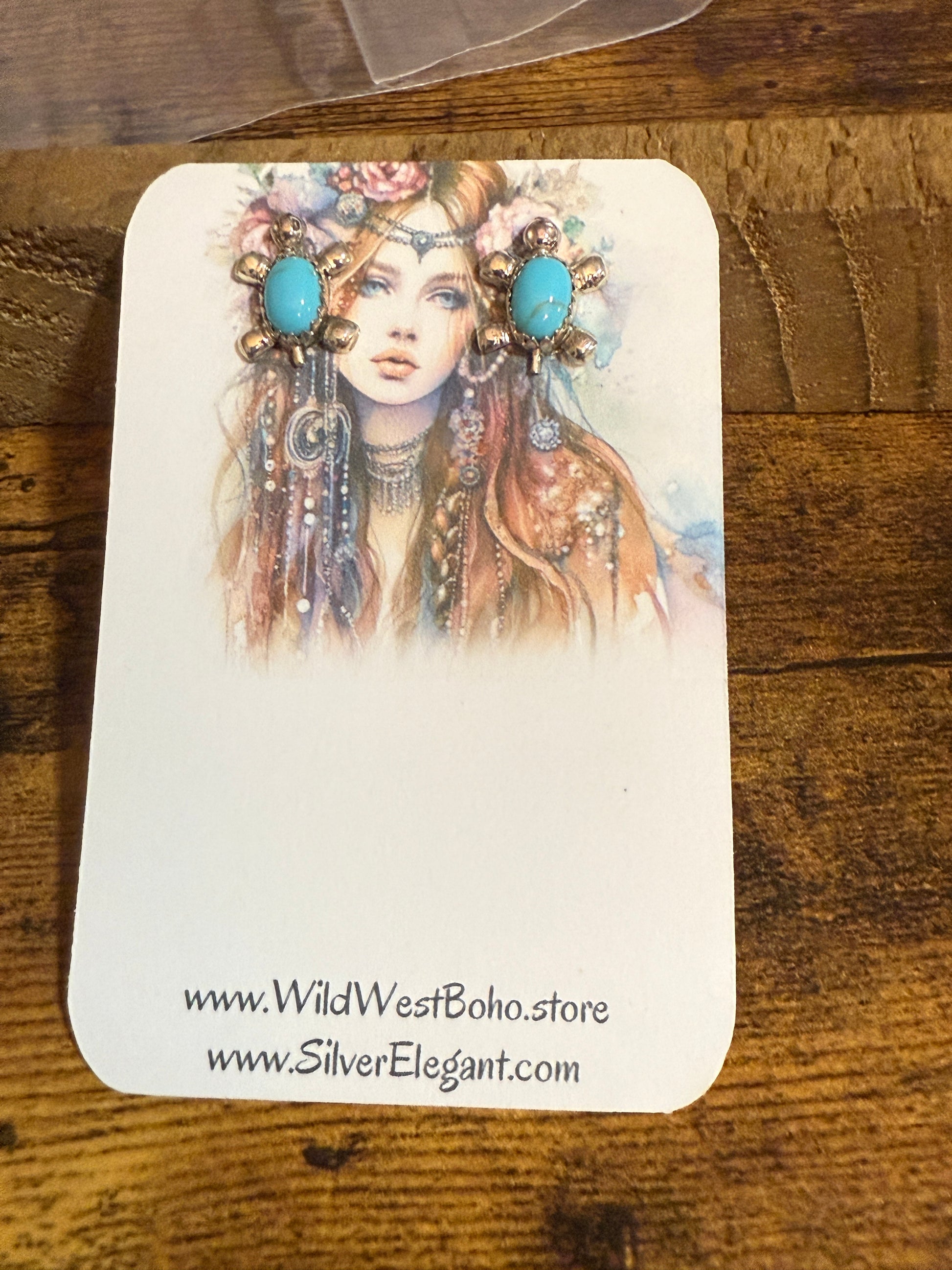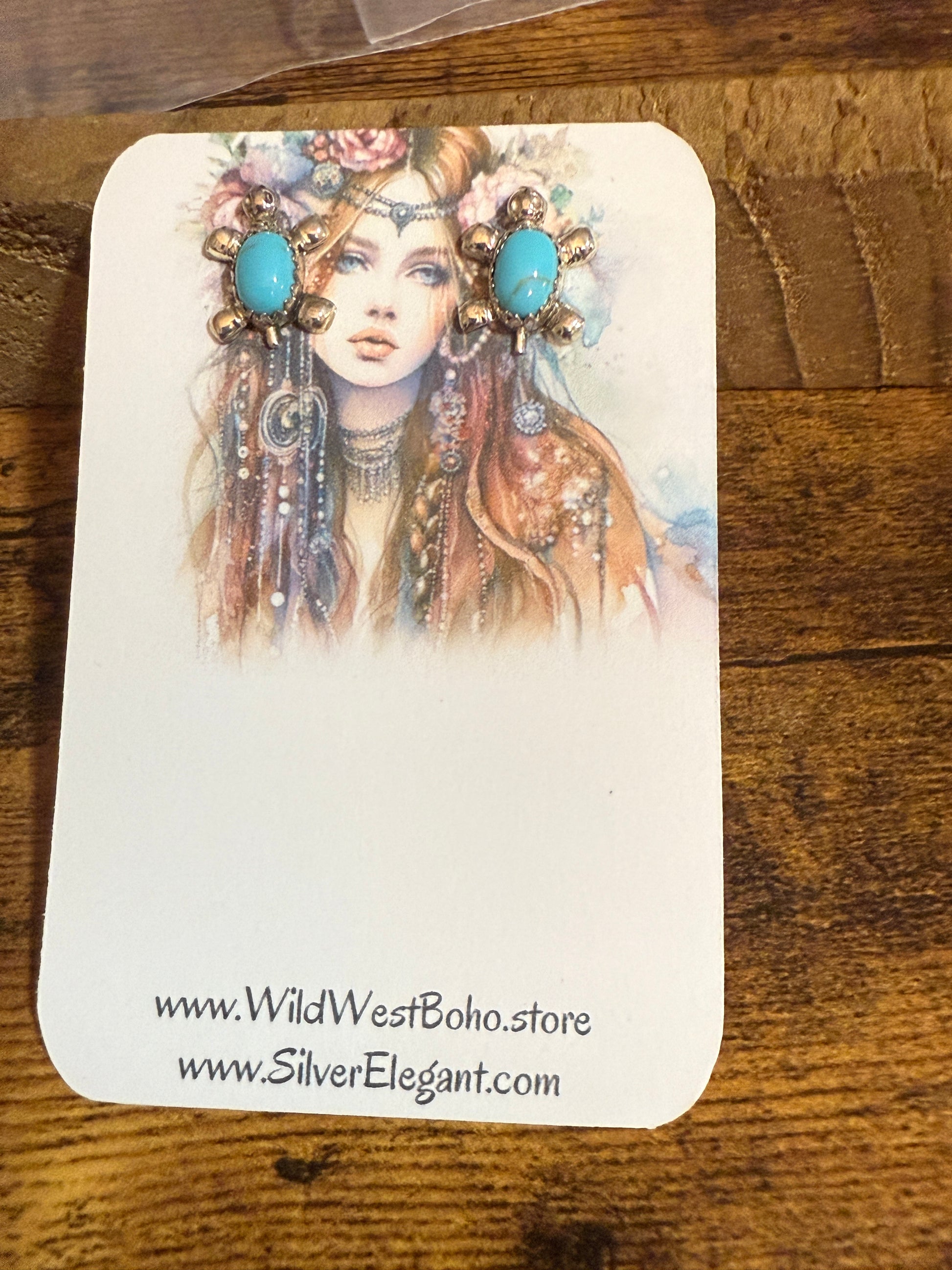 Native American Zuni Sterling Silver Turquoise Turtle Post Earrings Kinsel