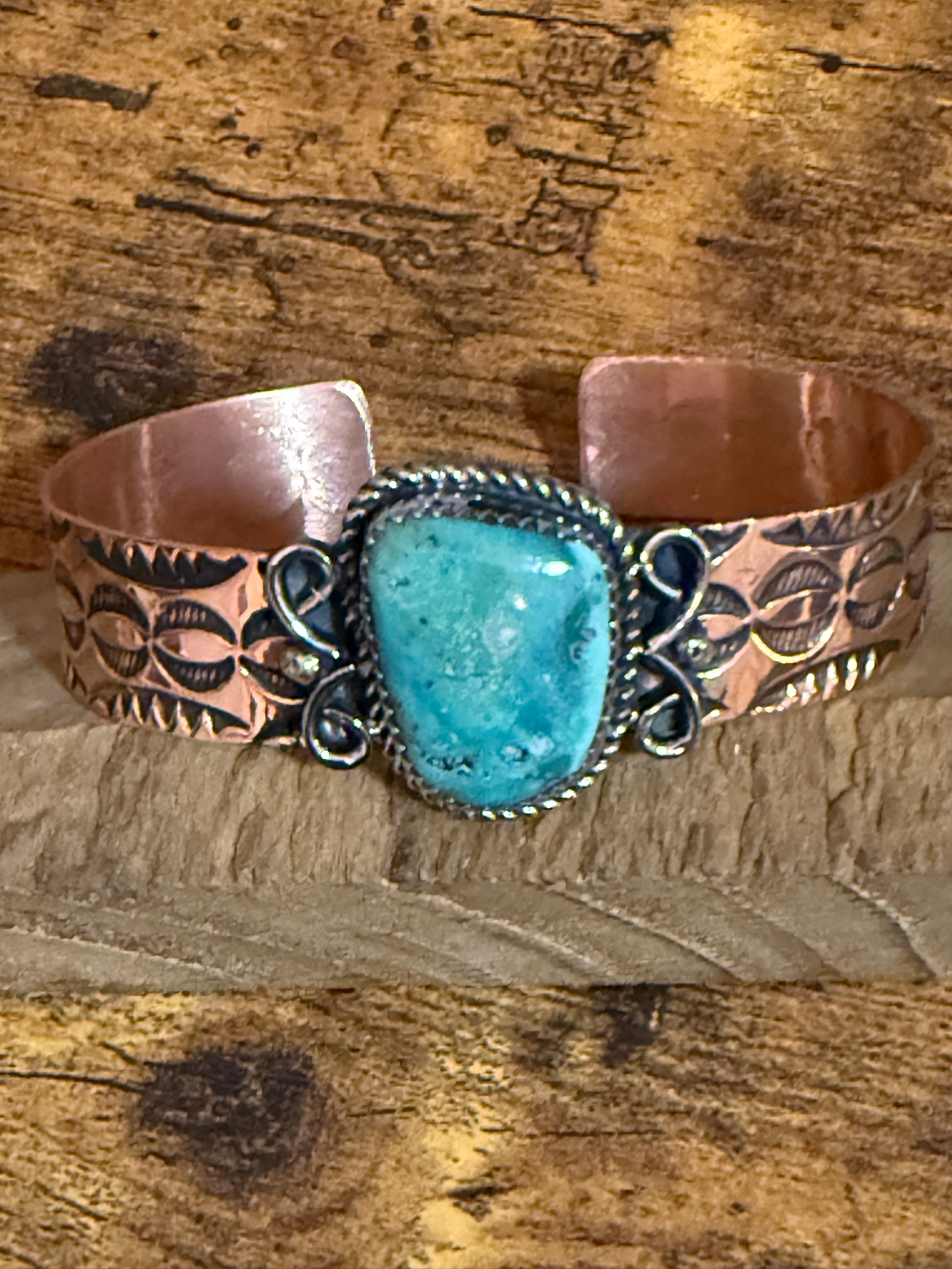 Navajo Copper Turquoise Cuff Bracelet Signed by Jackie Cleveland
