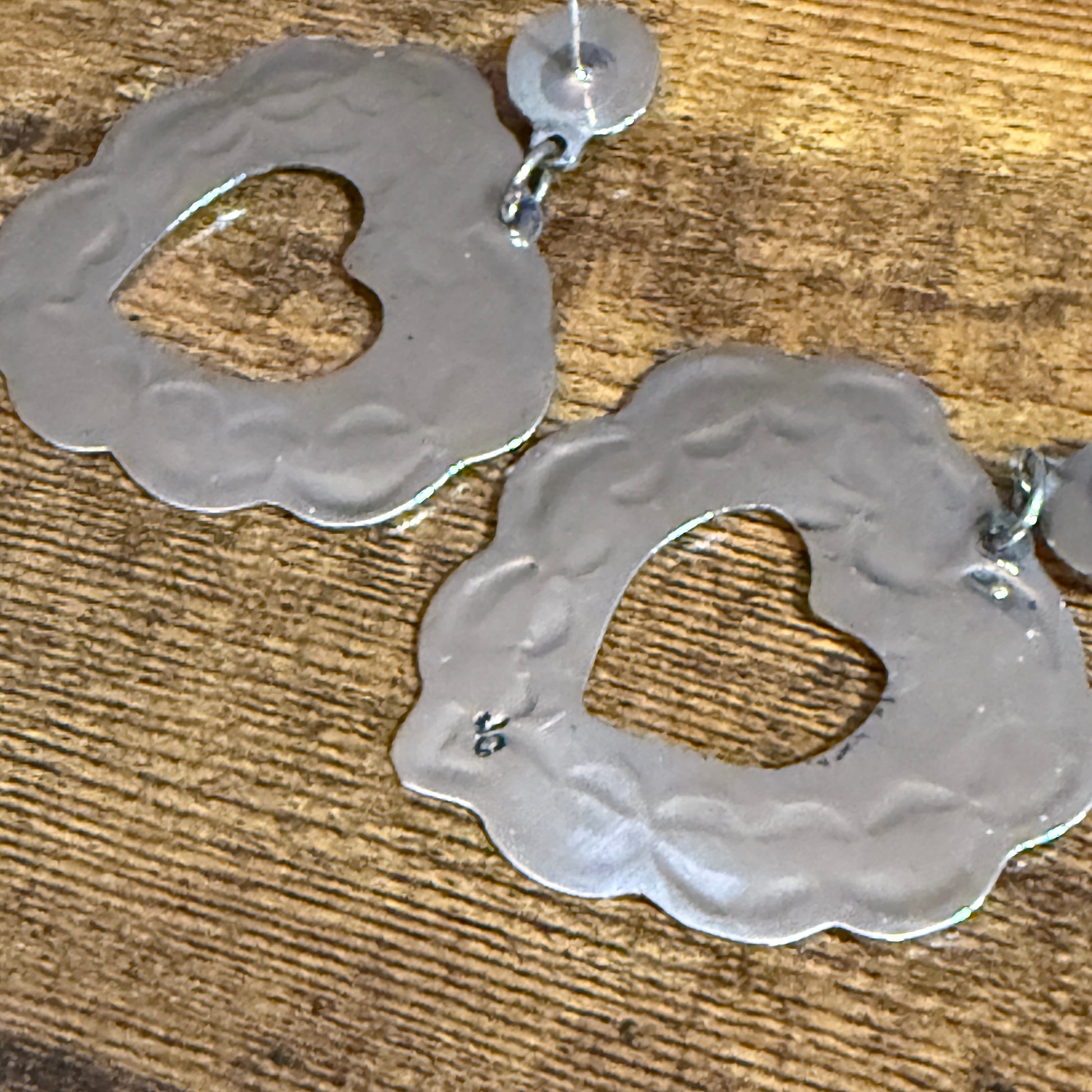 - Dangle post earrings with secure backs, signed “JC” on the back by renowned Navajo silversmith Jackie Cleveland.