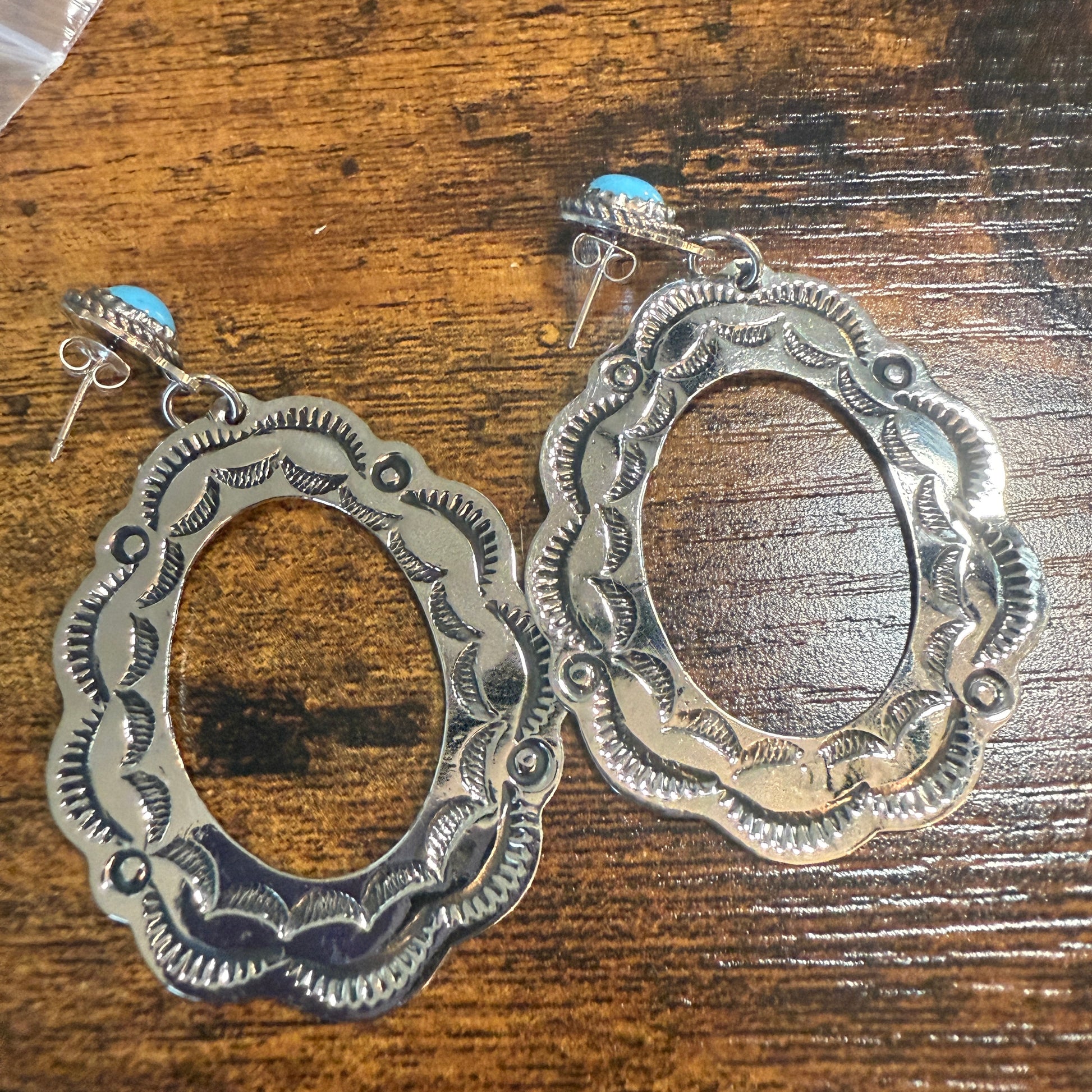 Navajo Turquoise Dangle Earring Signed By Cleveland Nickel Silver