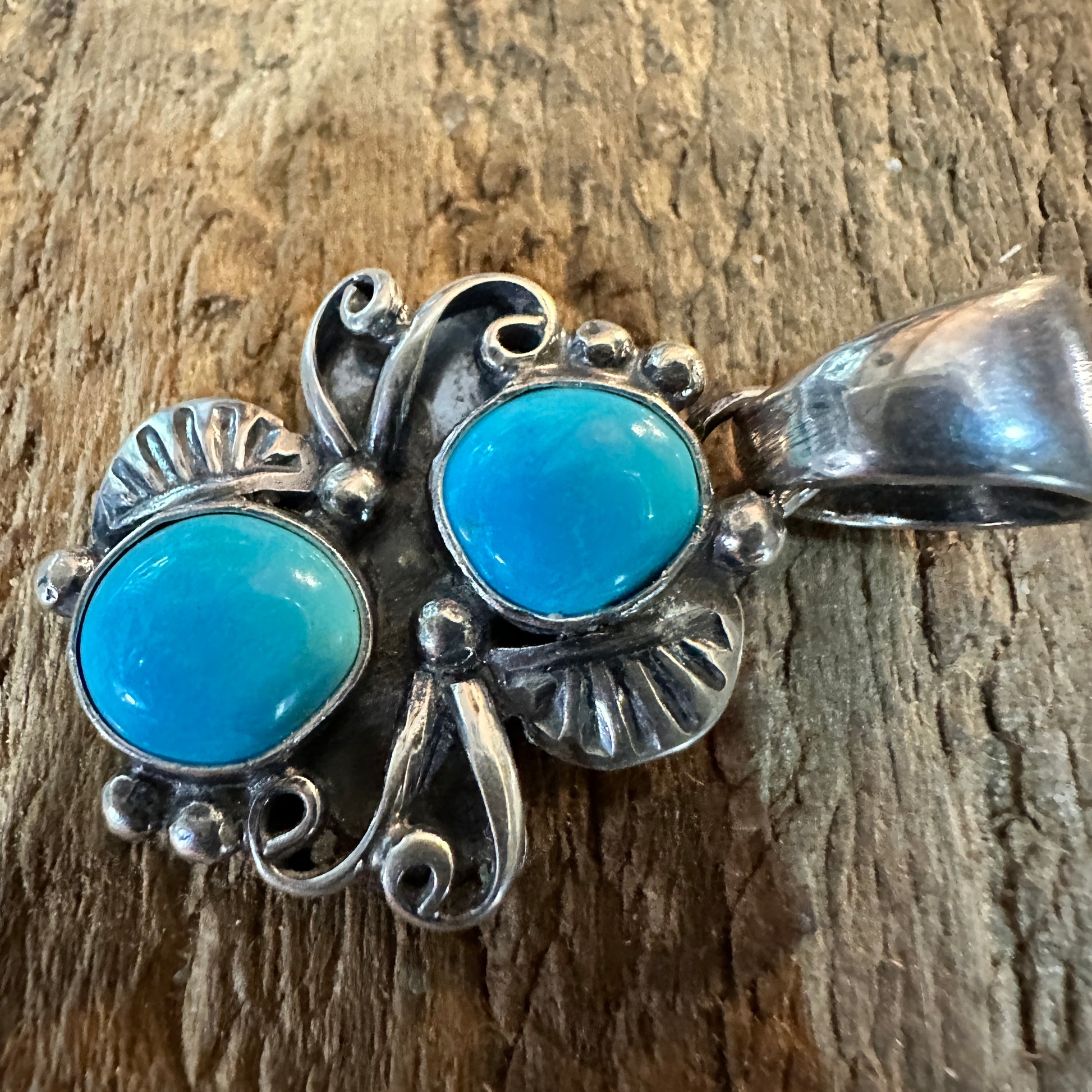 Elegant Navajo turquoise pendant crafted in sterling silver, featuring natural turquoise stones and an artist-signed finish for authenticity and timeless Native American artistry.