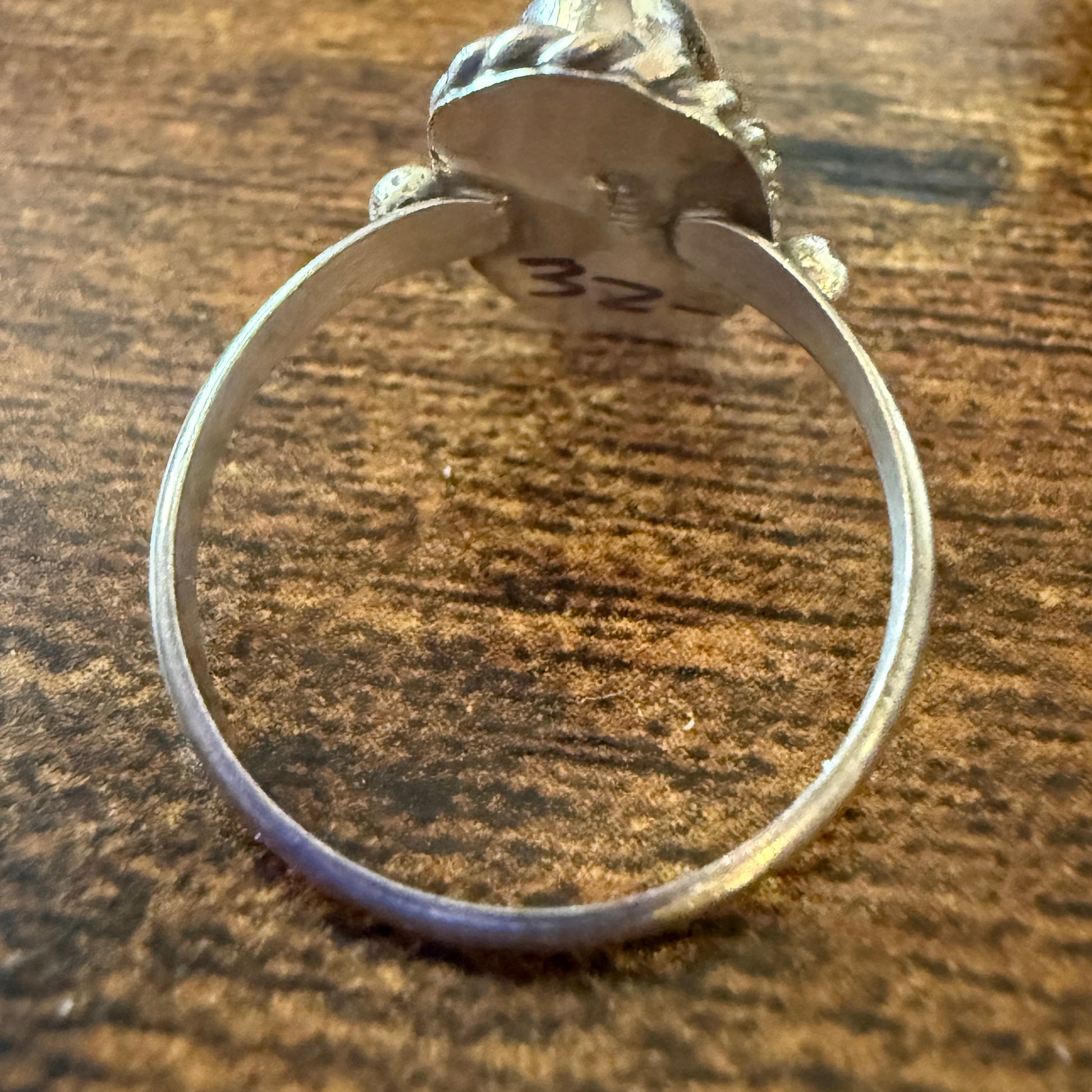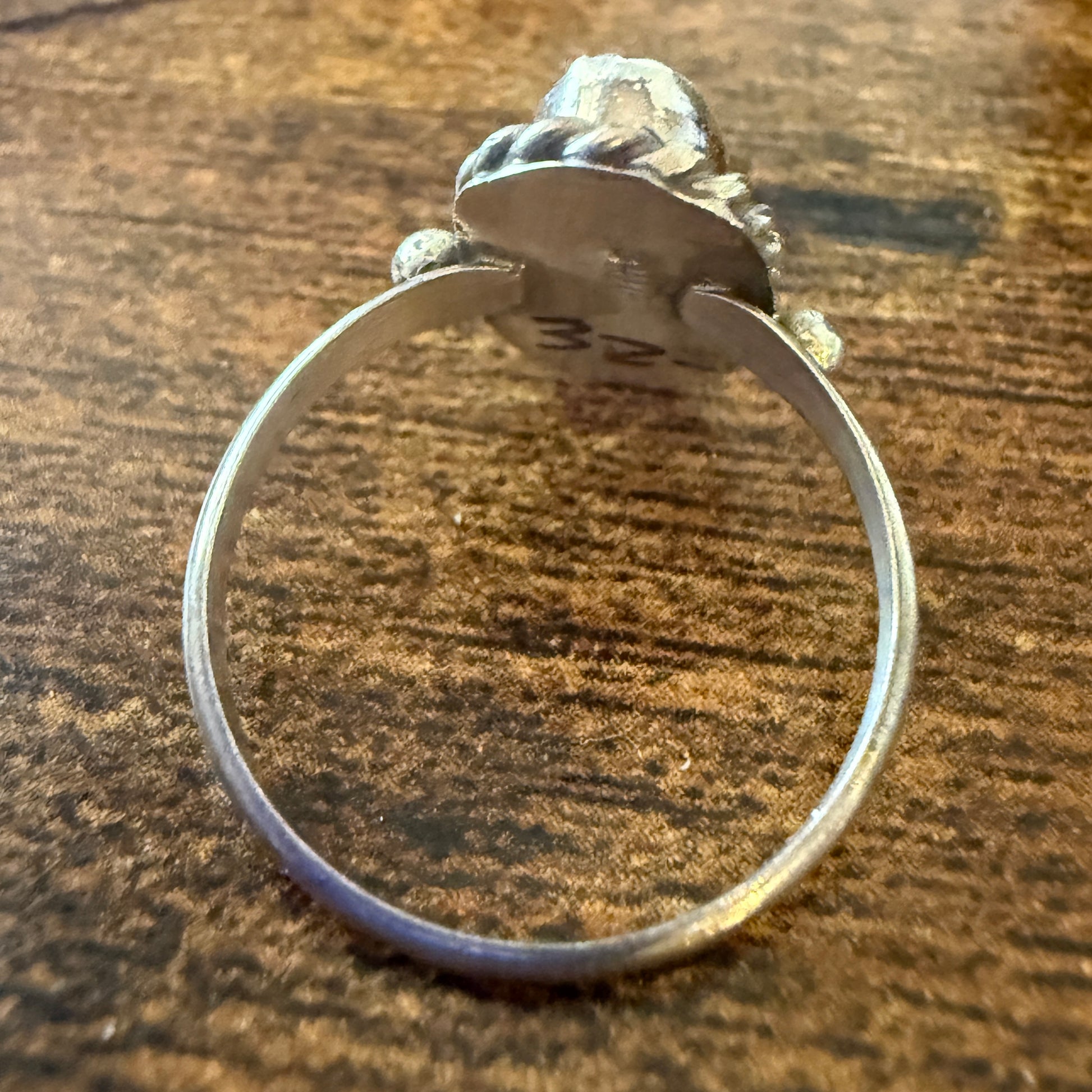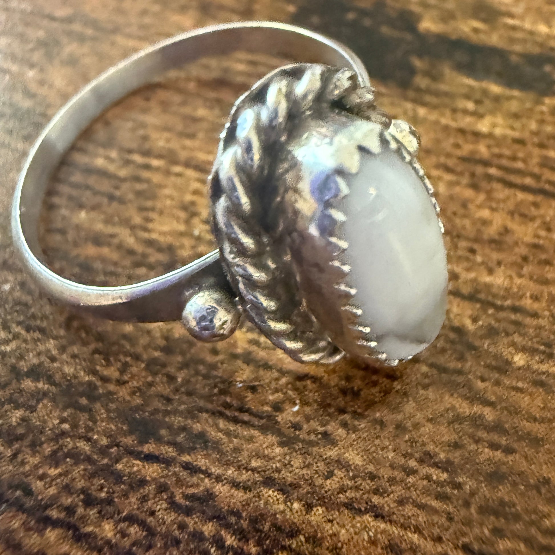 White Buffalo Turquoise Ring Sterling Navajo Handmade Size Seven Point Five