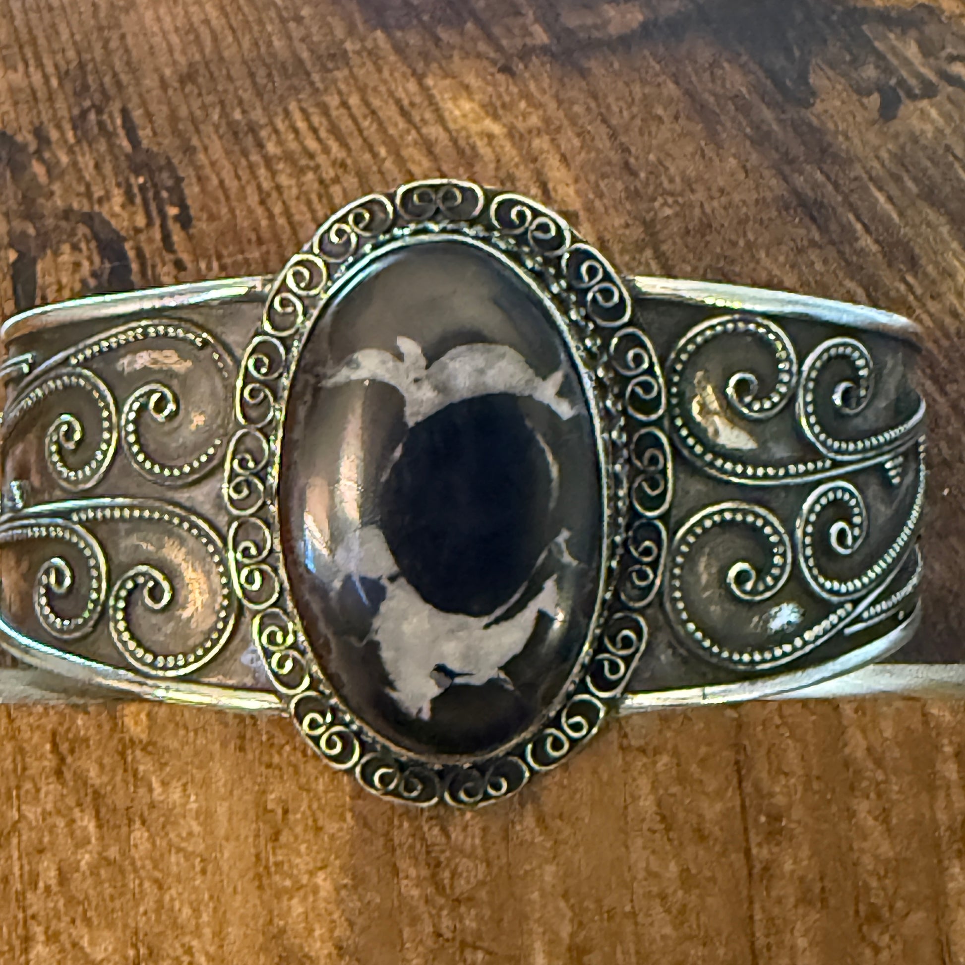 Elevate your style with an oval Moroccan Mud Crack Fossil Vintage Cuff Bracelet, crafted in genuine 925 sterling silver for a distinctive, timeless look.