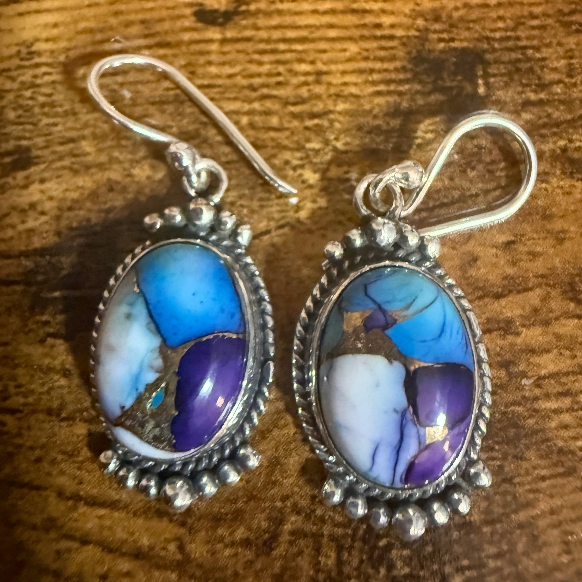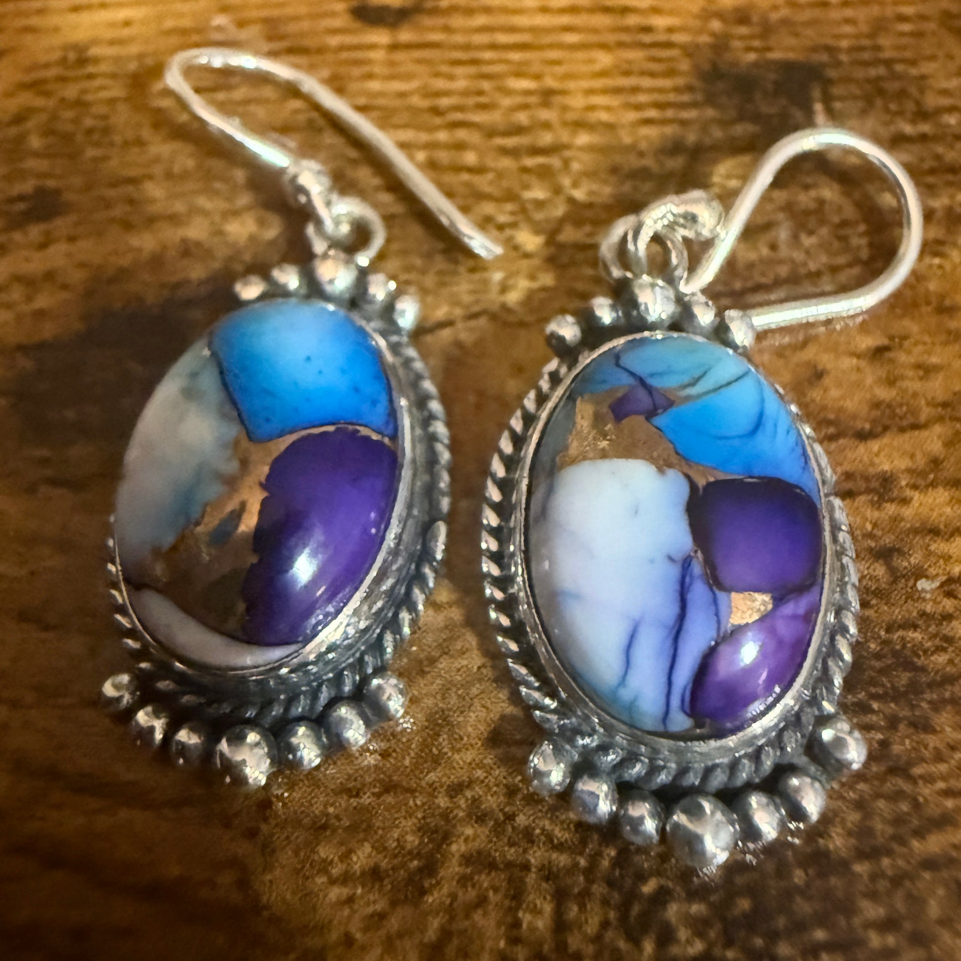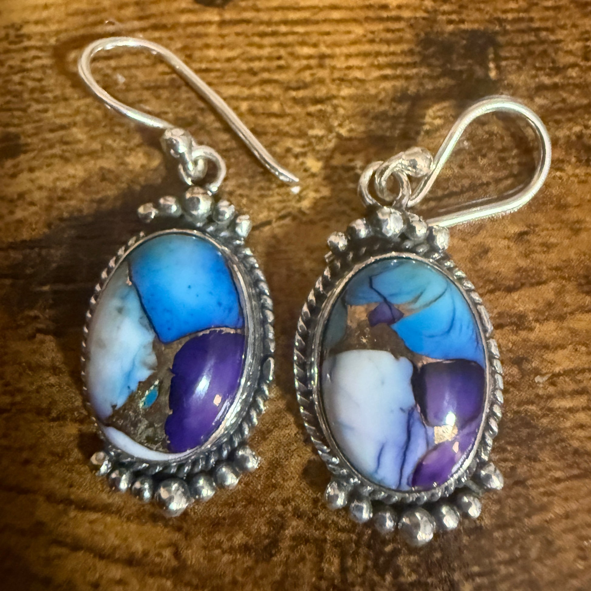 Purple Dahlia Turquoise Earring 925 Sterling Silver Dangle Jewelry