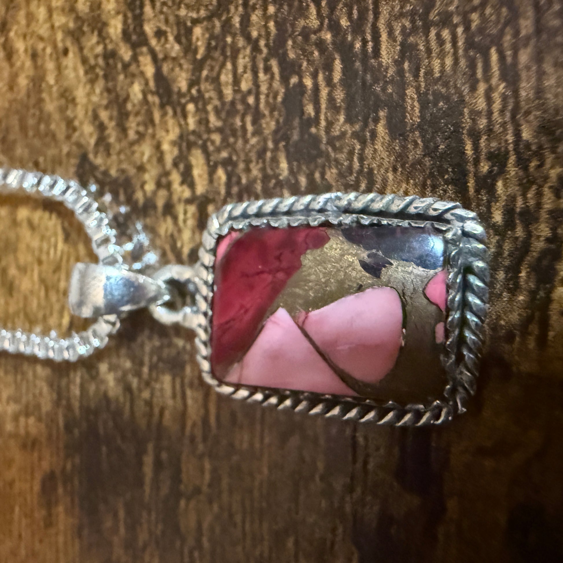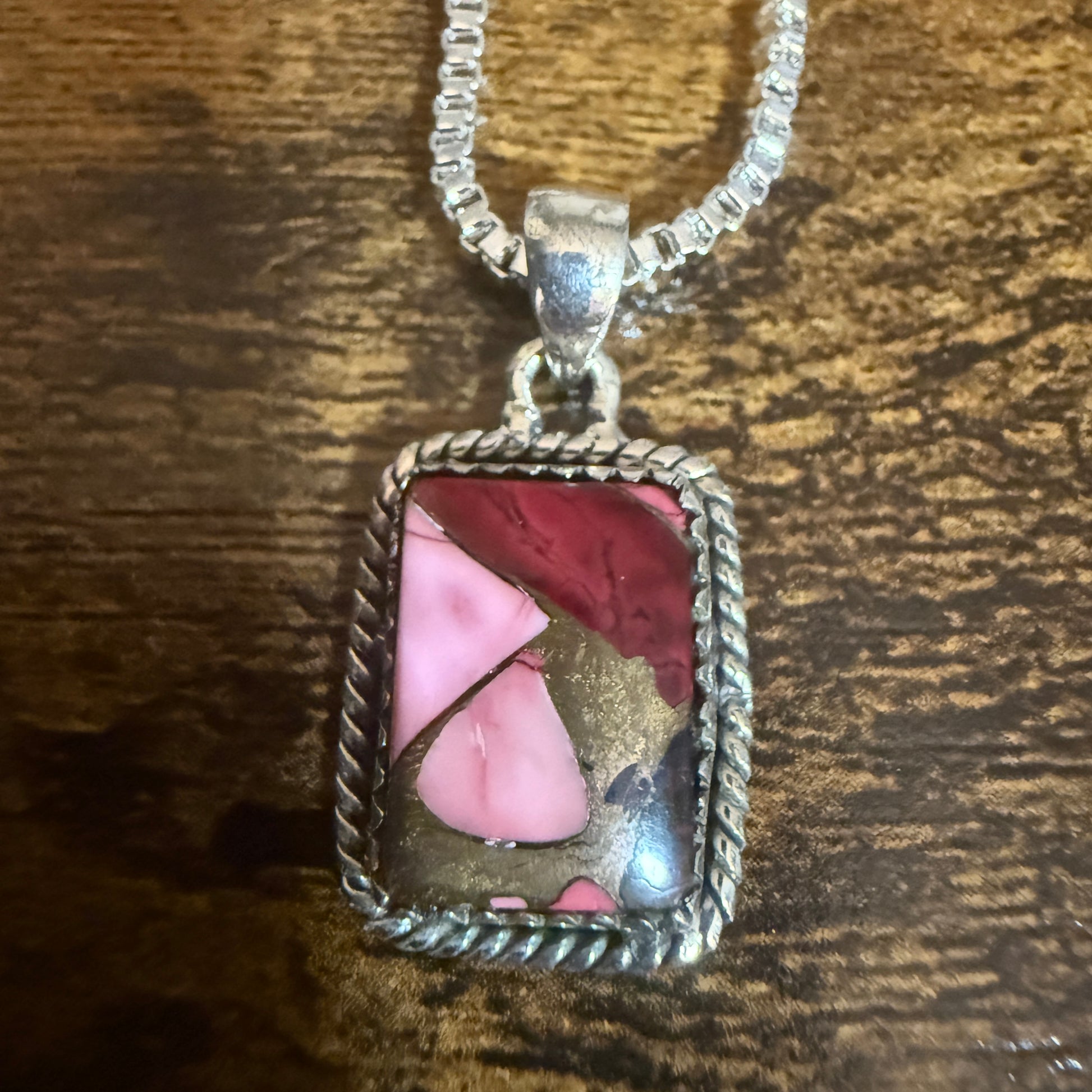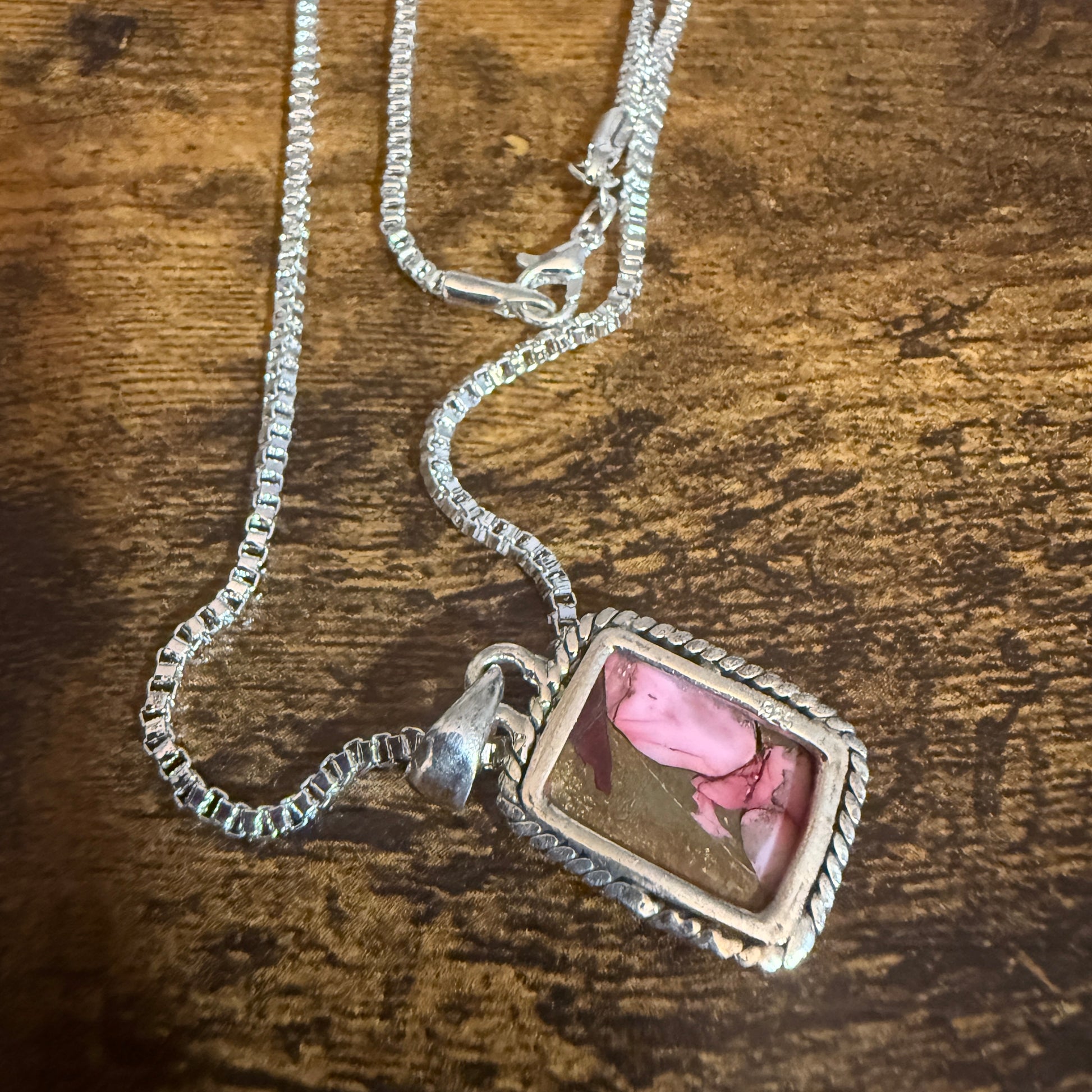 Elegant and eye-catching, the Red Rose Dahlia Turquoise Pendant Necklace blends floral artistry with a turquoise centerpiece, all set in 925 sterling silver on an 18-inch chain for versatile everyday wear.