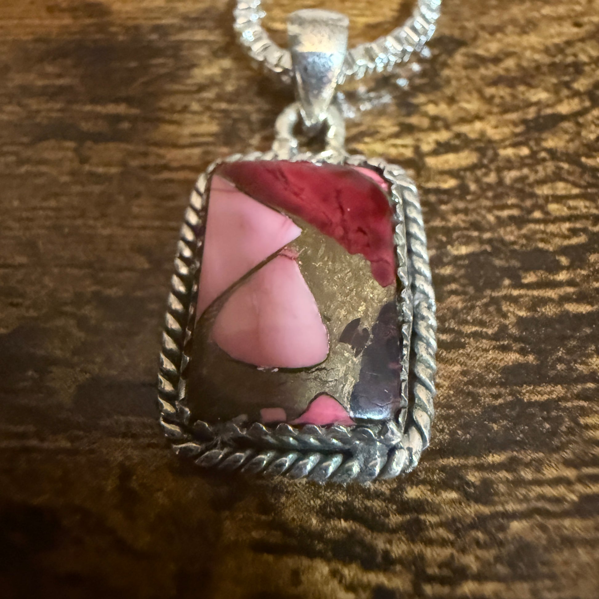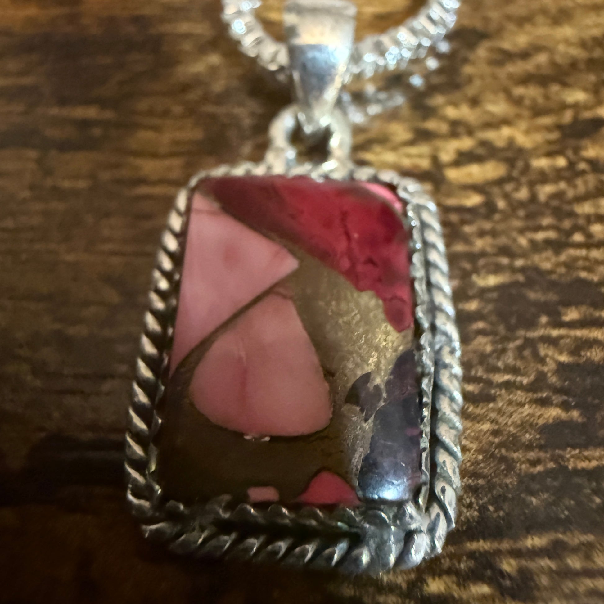 Red Rose Dahlia Turquoise Pendant Necklace 925 Sterling Silver 18 Inch